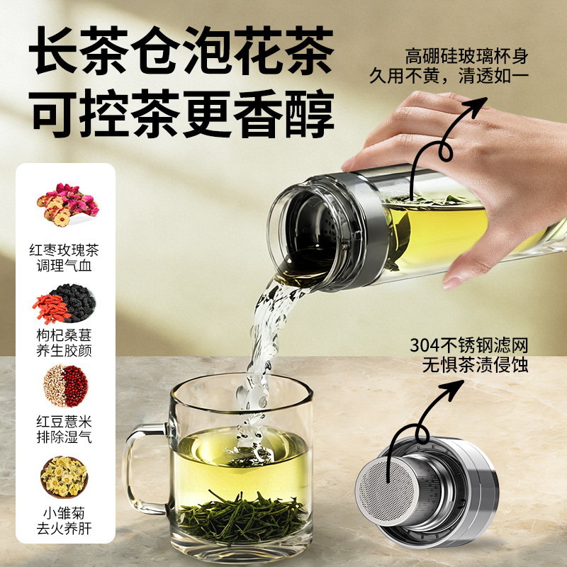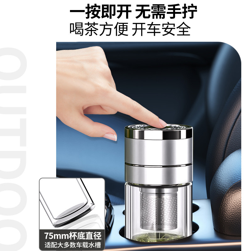 宝选一键开盖水杯车载双层玻璃杯男士泡茶保温速开茶水分离杯茶杯