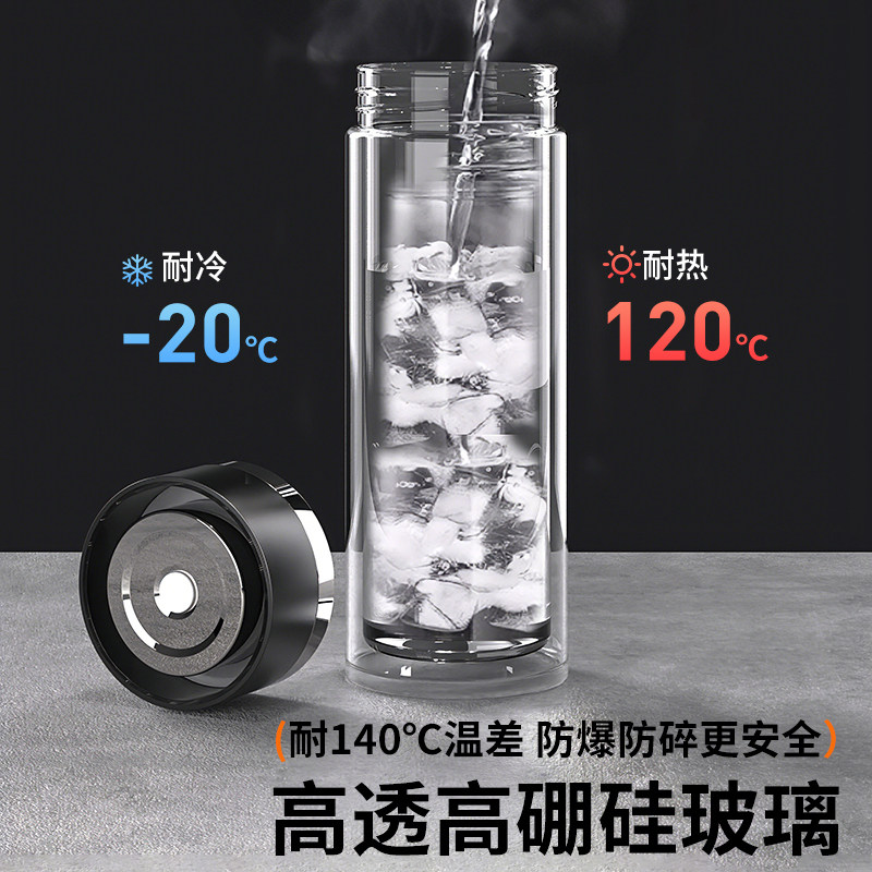 希诺玻璃杯双层保温泡茶杯男士水杯官方正品茶杯女家用杯子礼盒装