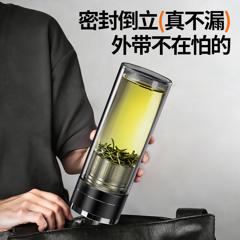 一键开盖玻璃茶杯男士泡茶专用水杯男2025新款高硼硅防摔杯子便携