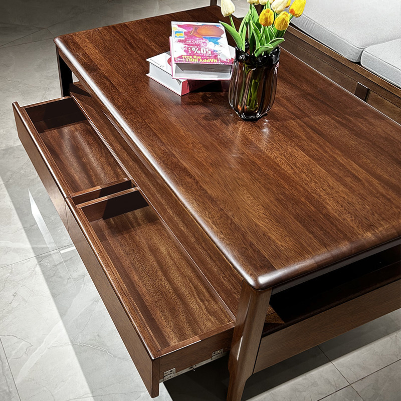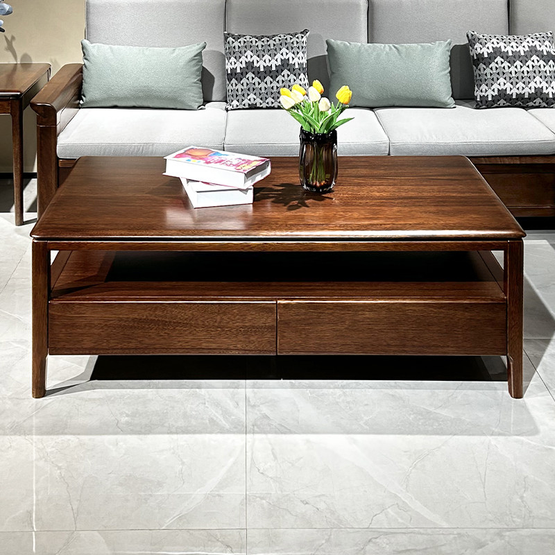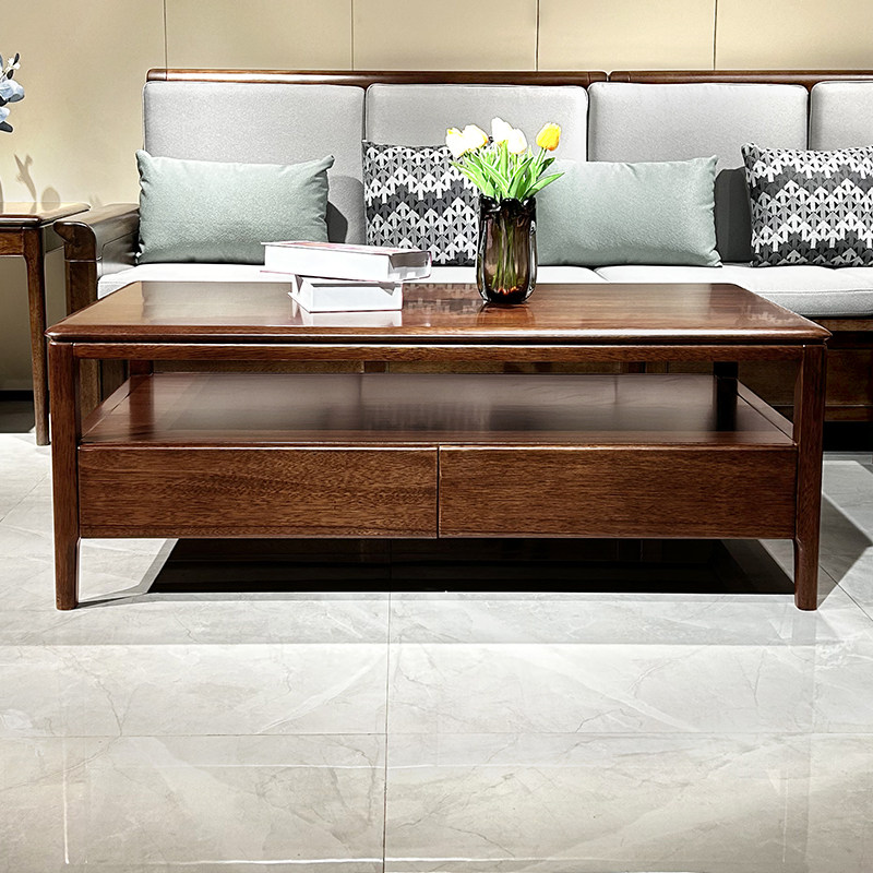 全实木茶几简约现代小户型客厅胡桃木长方形茶桌茶台家用木质家具