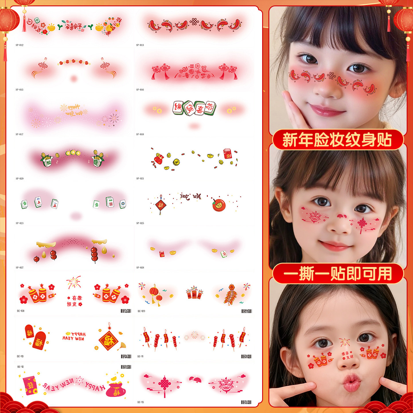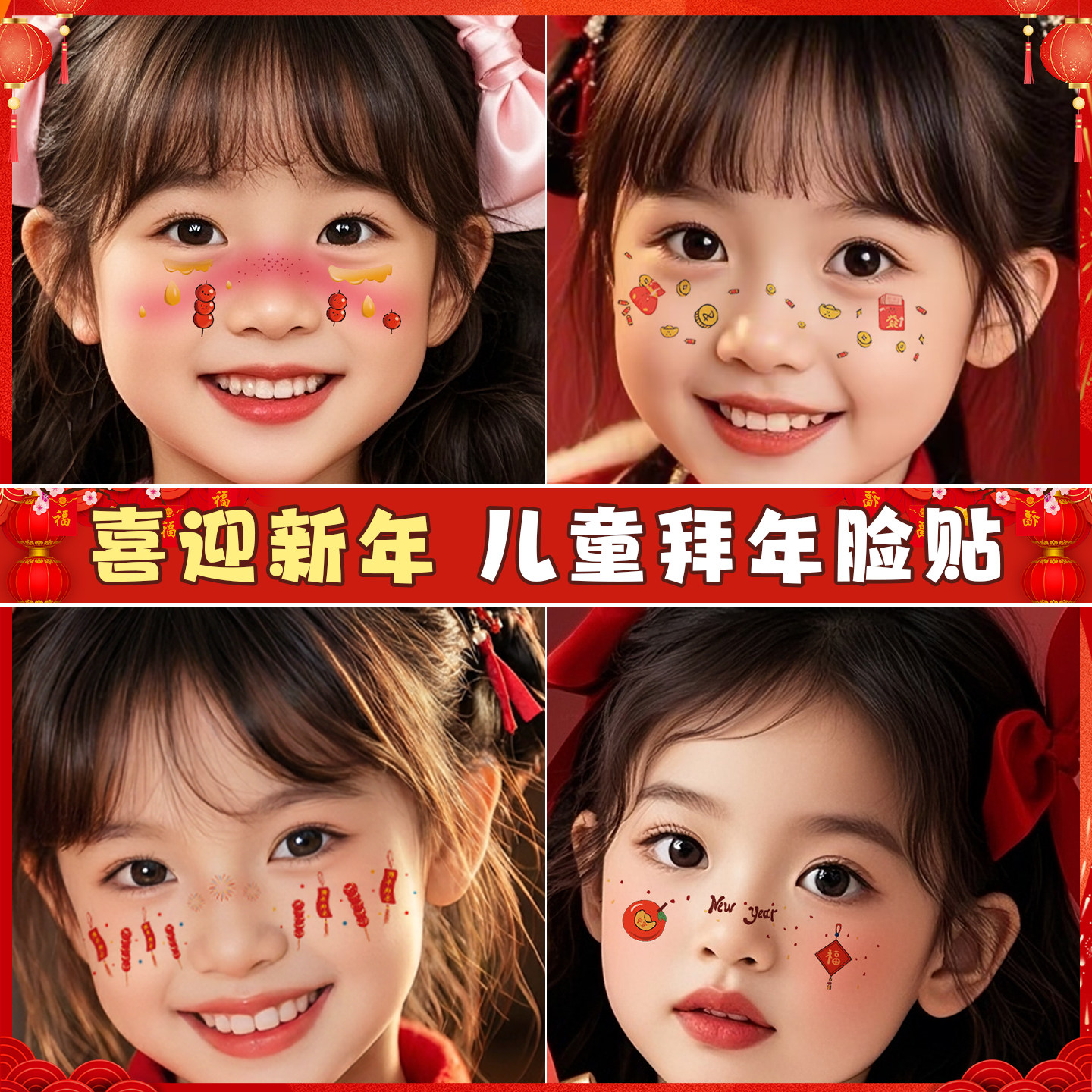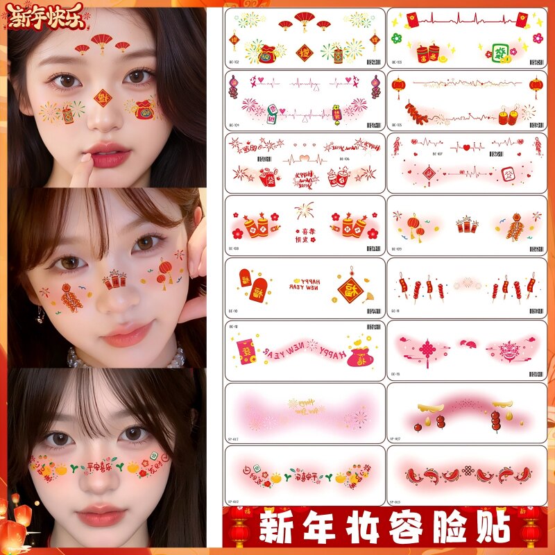 新年装饰贴纸儿童过年脸部彩绘妆容贴小女孩表演幼儿园文艺晚会腮红化妆贴cos装扮拍照打卡道具防水纹身贴纸