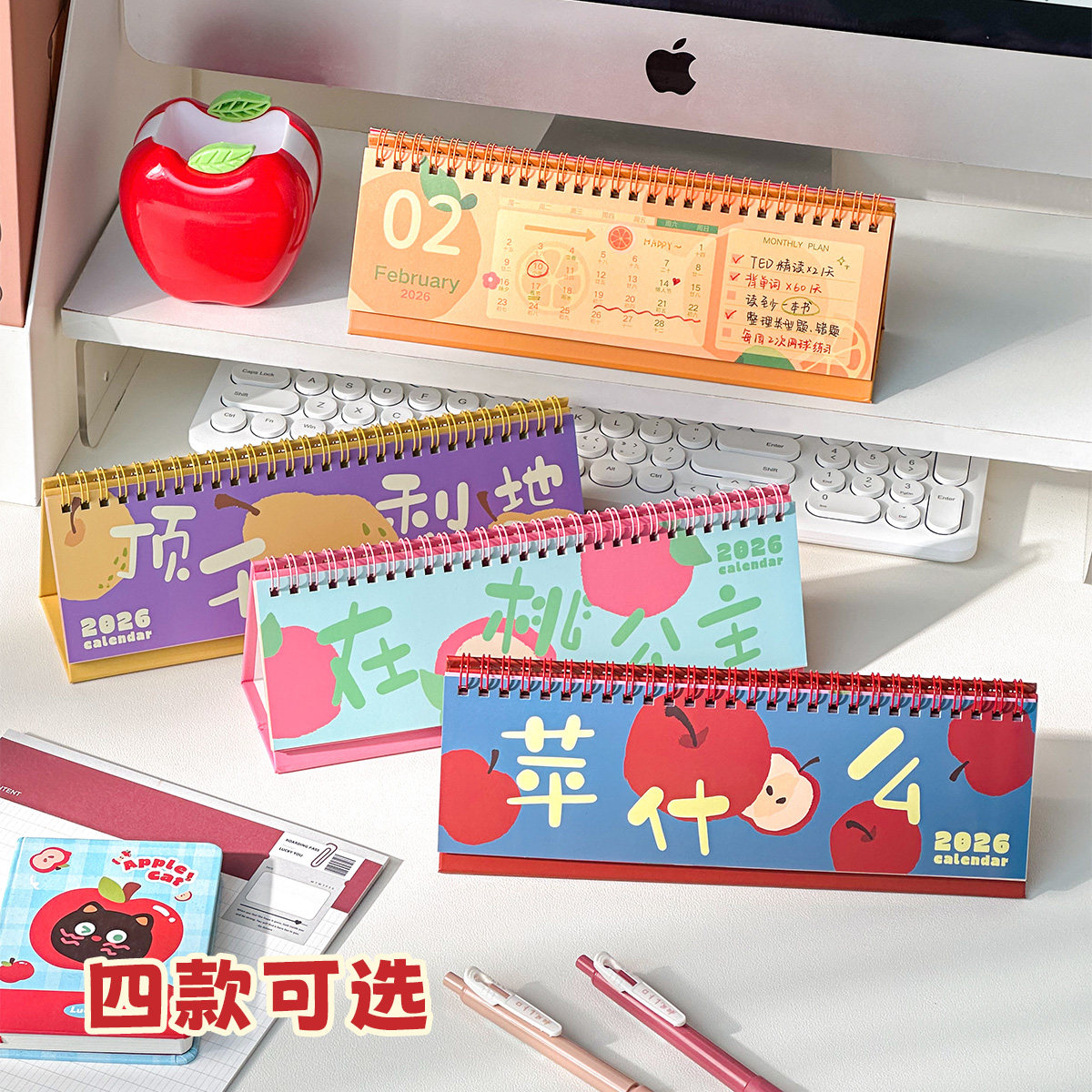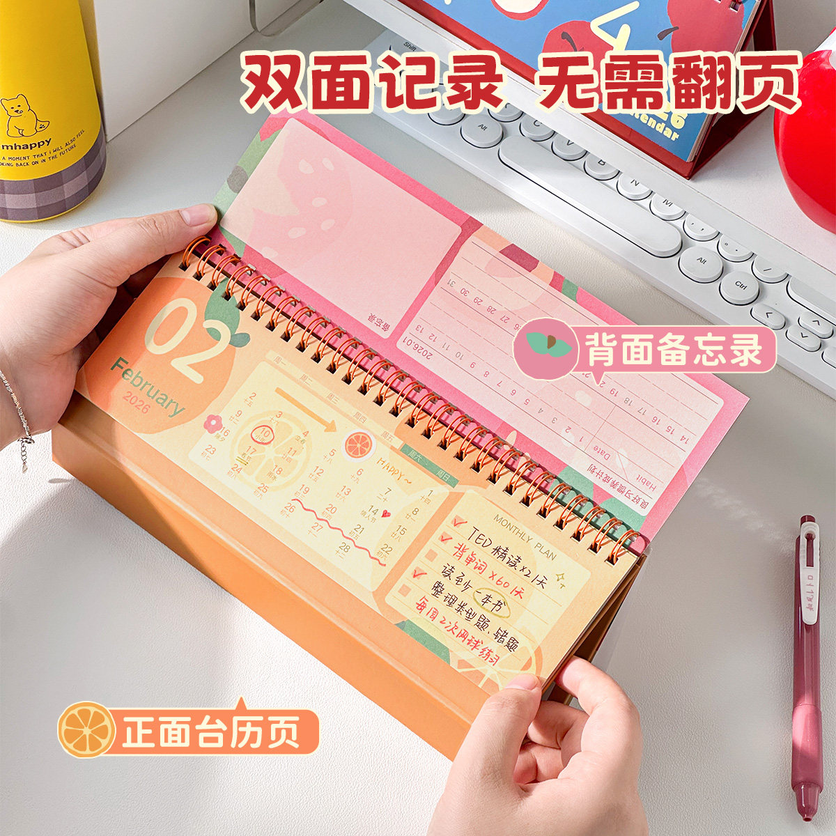 三年二班 2026水果横款日历计划小台历学生记事本备忘录中高考倒计时计划本月历年历全年创意桌面摆件2025年K