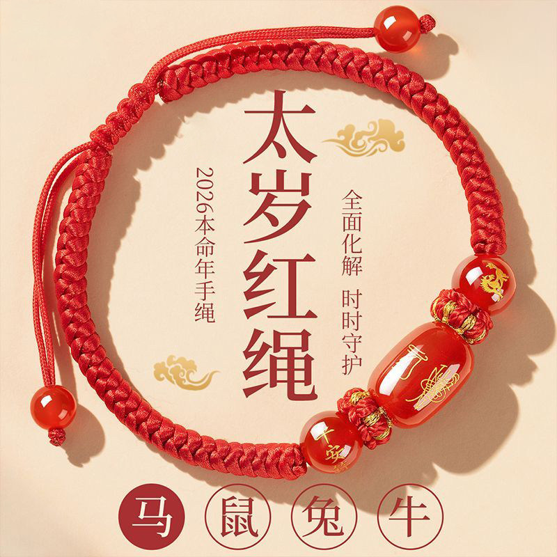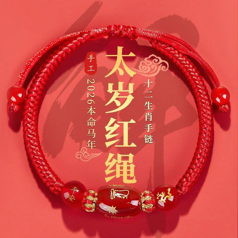 五台2026年马年本命年太岁红绳手链马鼠牛兔十二生肖护身符手绳