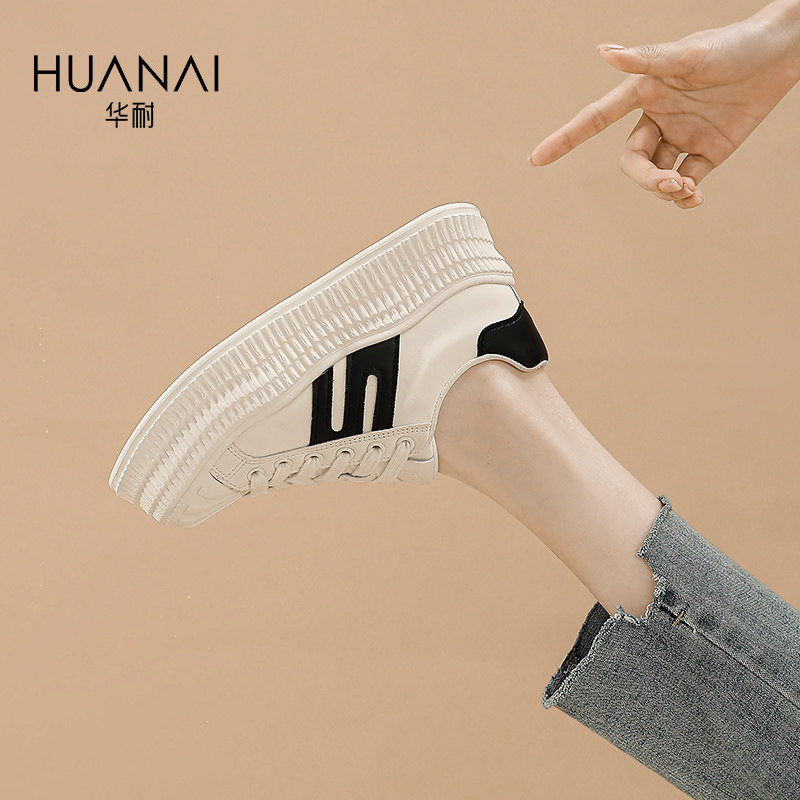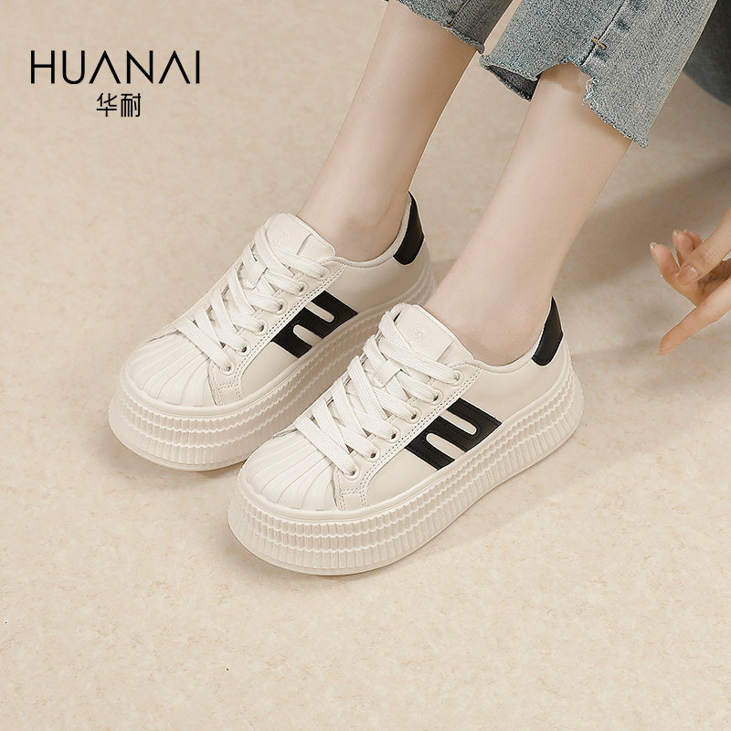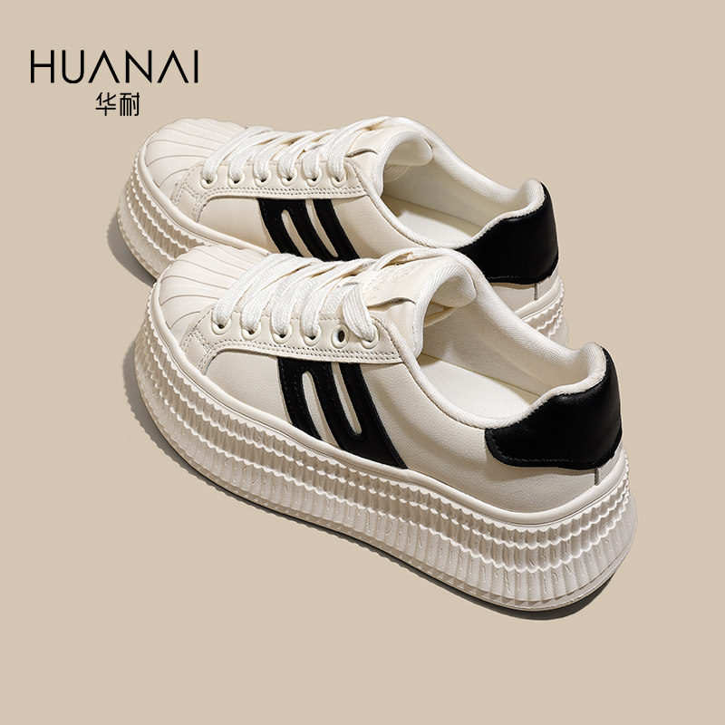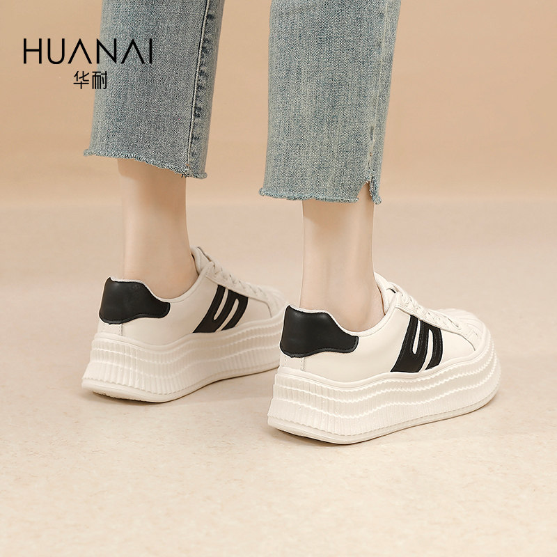 华耐厚底小白鞋女2025新款春秋百搭休闲板鞋内增高运动鞋松糕鞋子