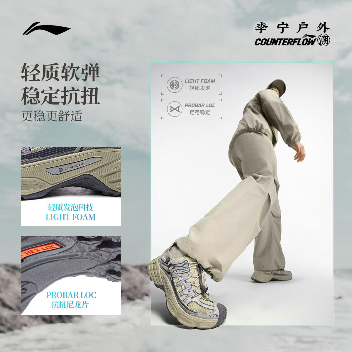 李宁户外CF溯|浔野溯溪凉鞋男女新款防滑速干透气两栖徒步运动鞋