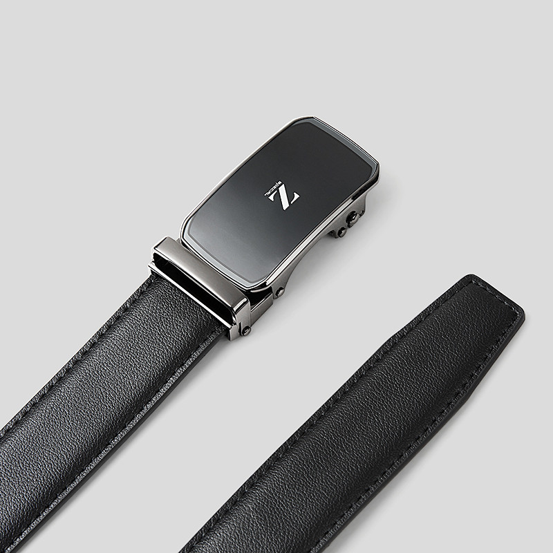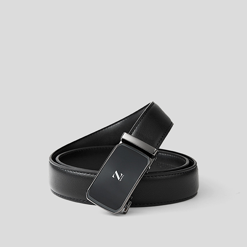 HLA/海澜之家Z字扣头通勤皮带2026新款商务自动扣黑色花纹腰带男