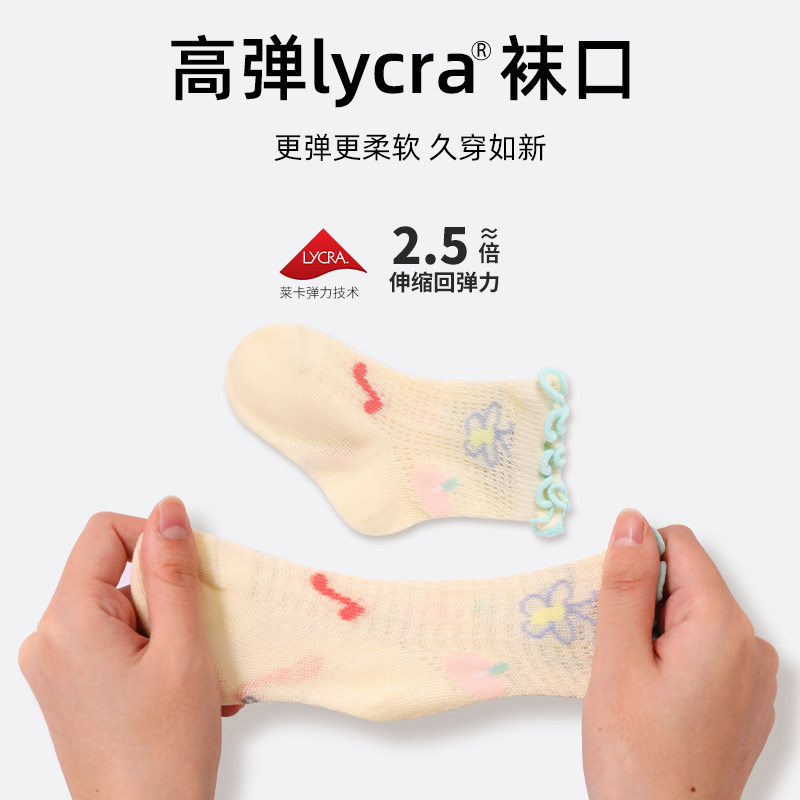 贝肽斯儿童袜子夏薄款透气棉袜婴幼儿网眼花边袜女童宝宝中筒袜S