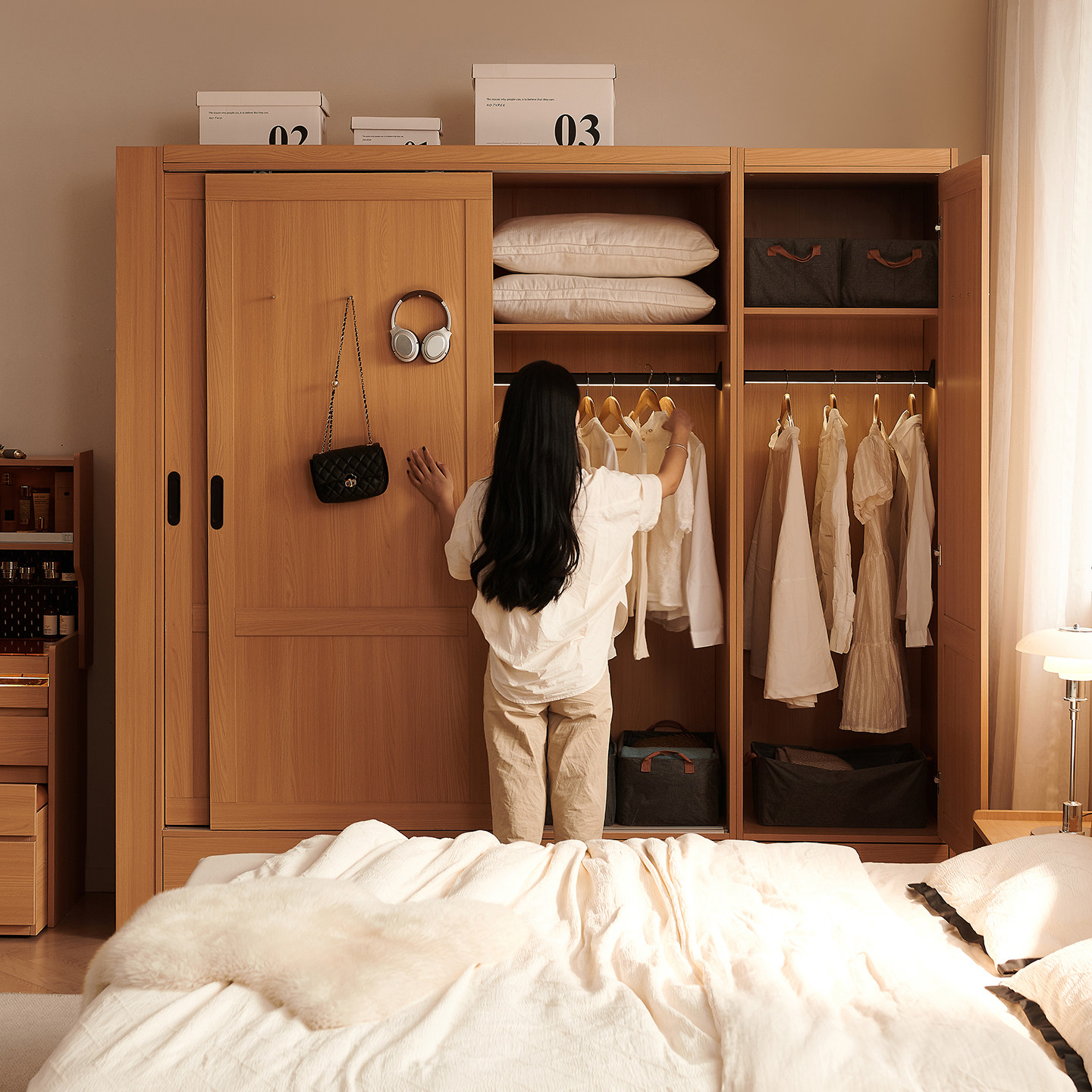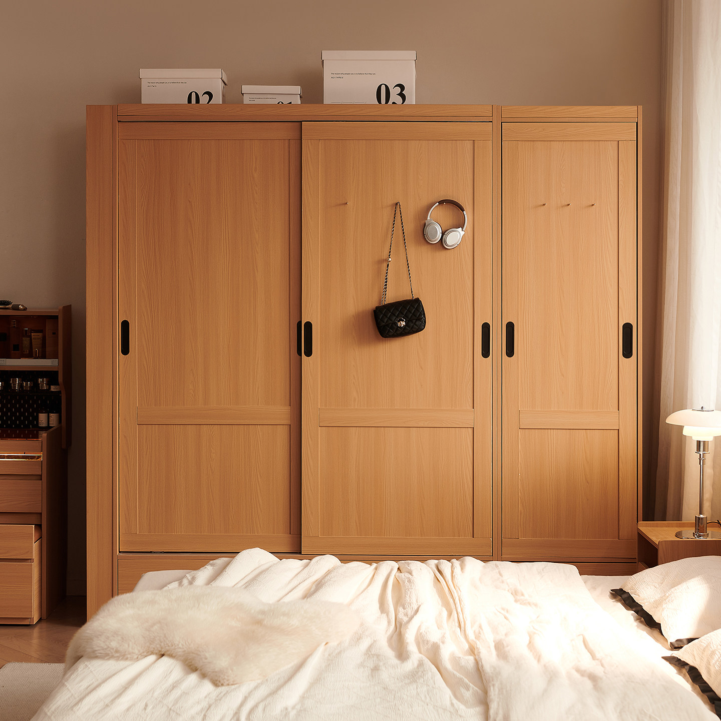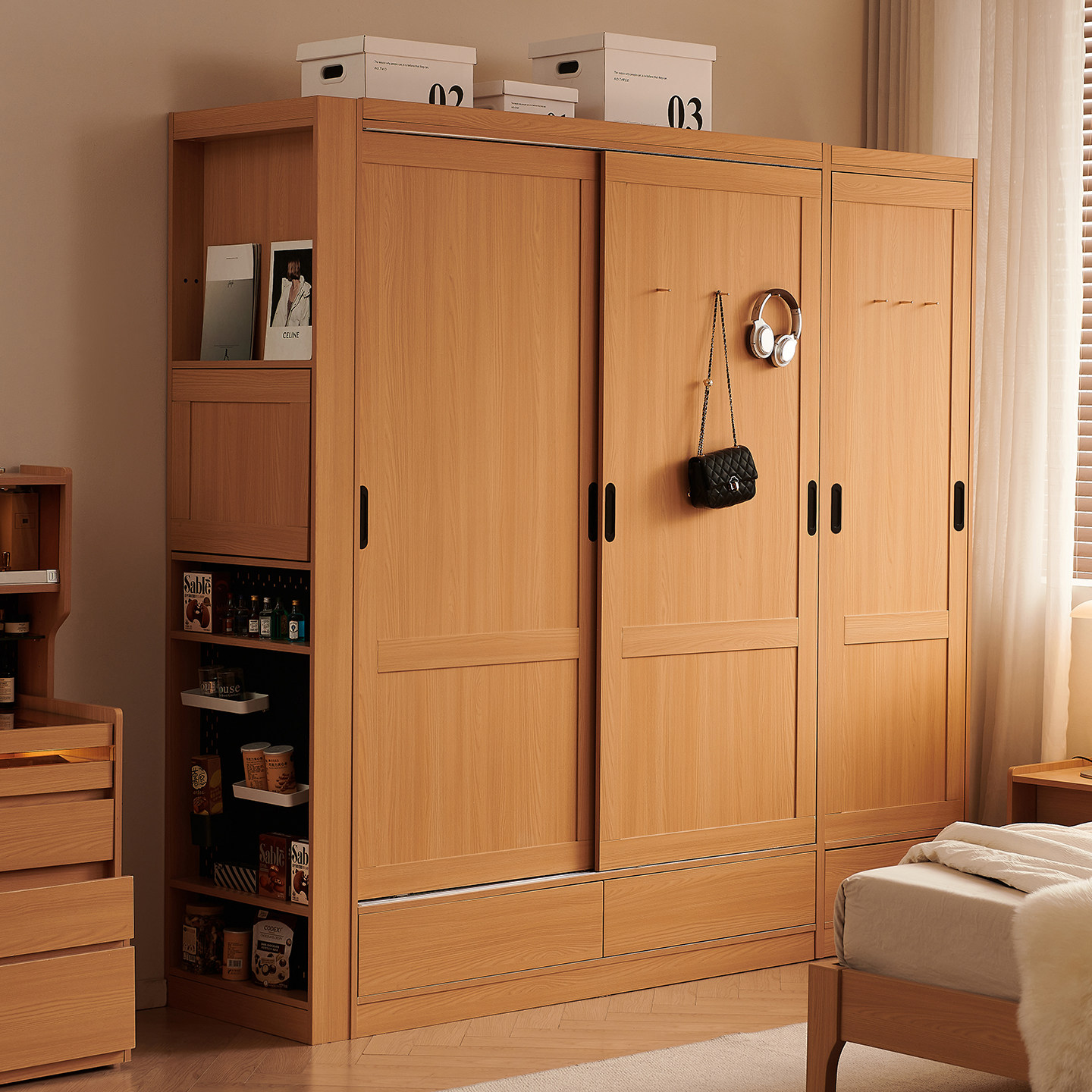 木兜家具实木推拉门衣柜带洞洞板侧柜子家用卧室2026新款移门衣橱