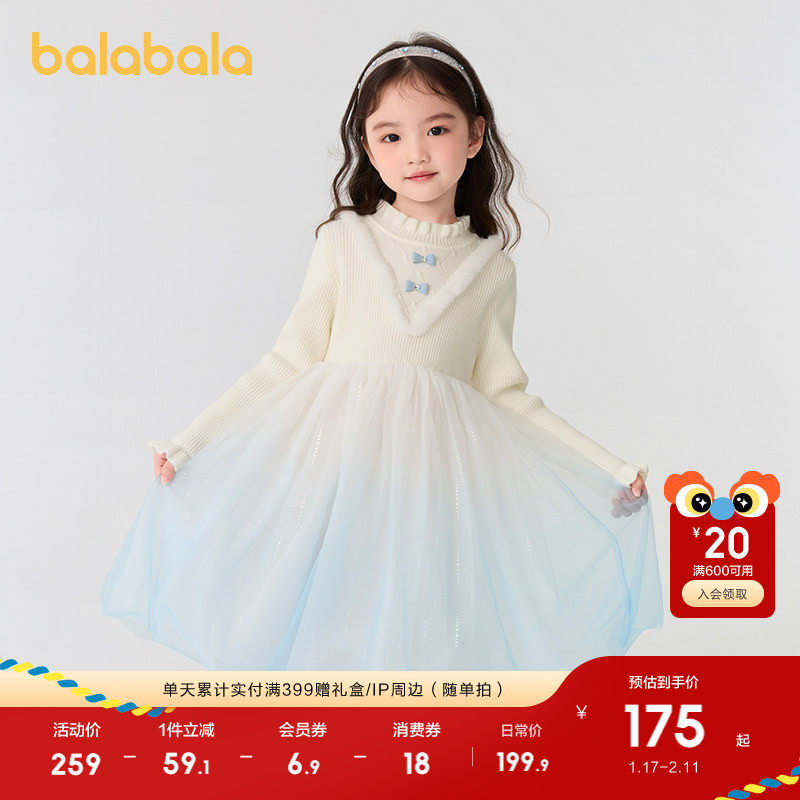 巴拉巴拉balaOne童装女公主裙2025秋冬新款儿童连衣裙针织网纱裙
