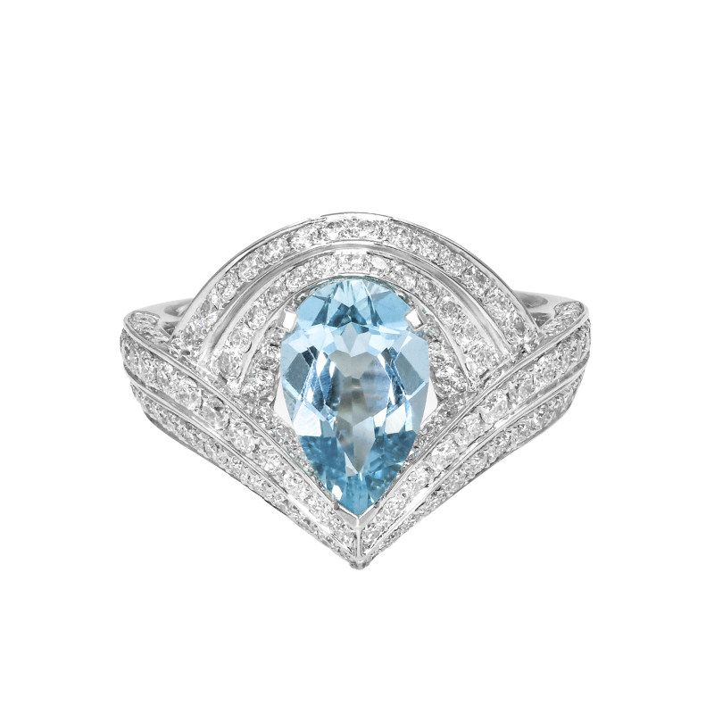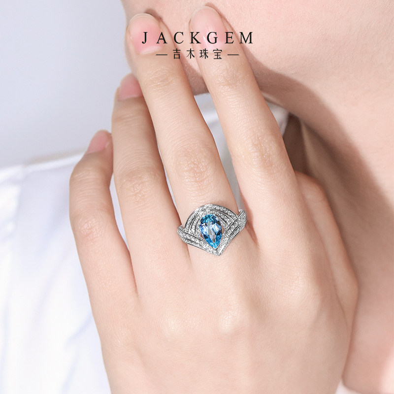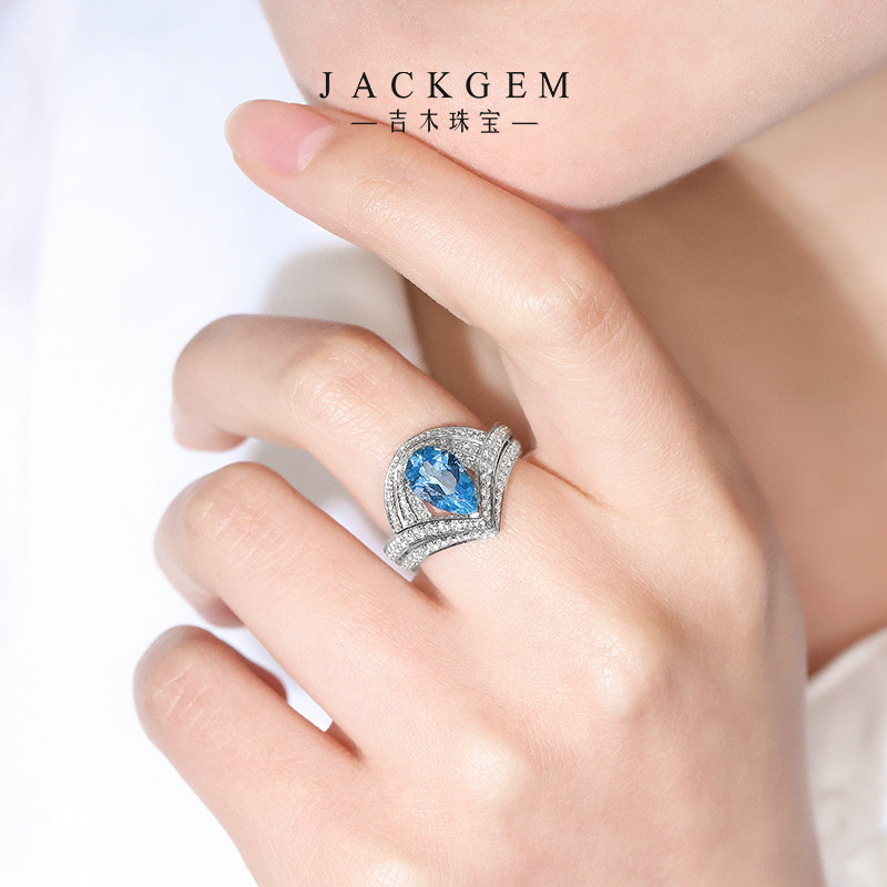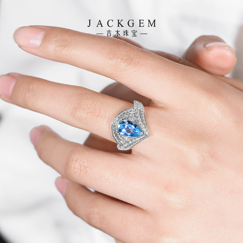 【为爱加冕】海蓝宝戒指18k金钻戒蓝宝石戒指金彩宝戒指婚戒女B3