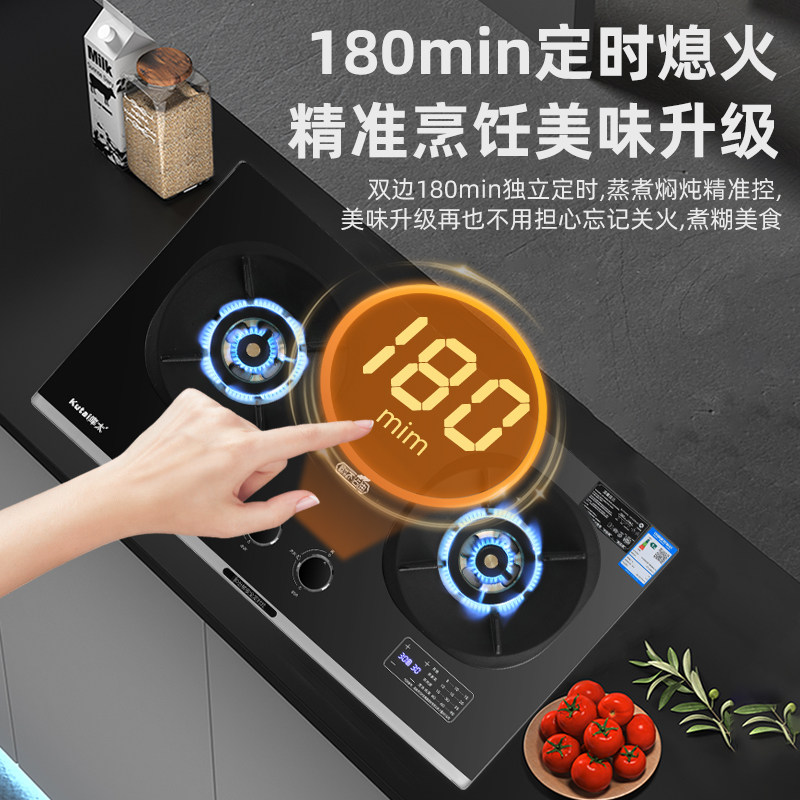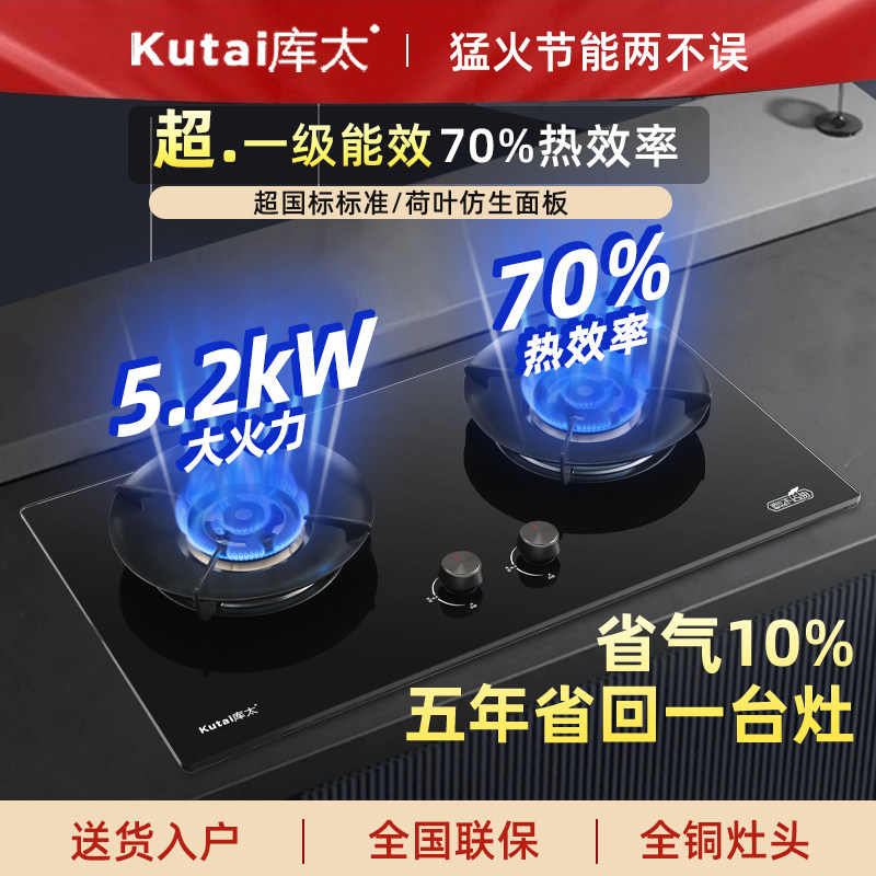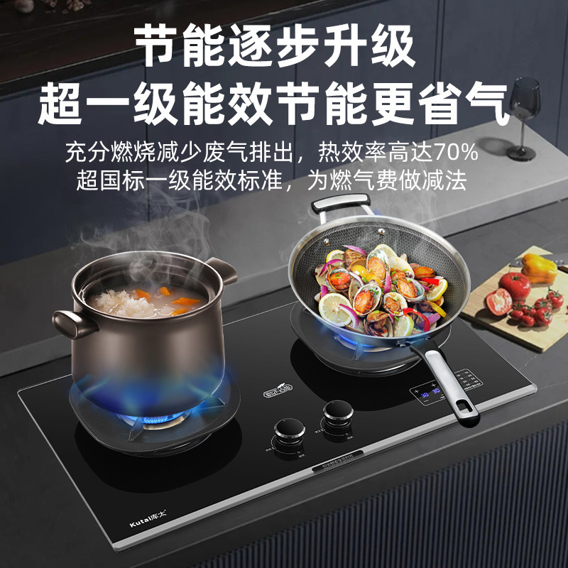 库太A11和A12定时猛火燃气灶70%热效率全铜火盖5.2KW荷叶仿生面