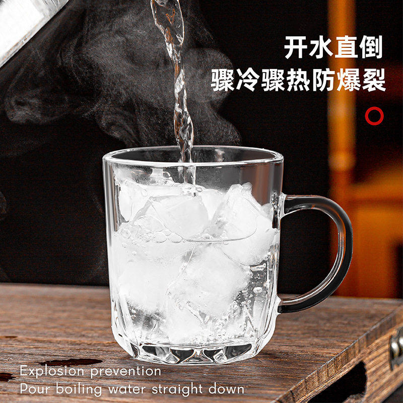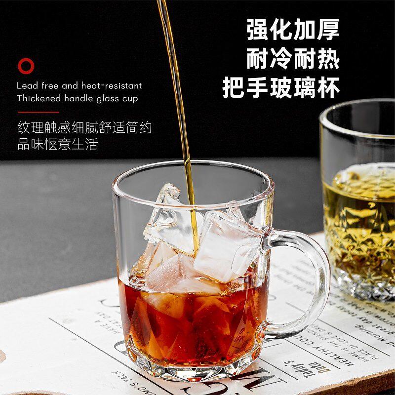 玻璃杯带把手杯子家用喝水耐高温茶杯待客水杯男士泡茶套装啤酒杯
