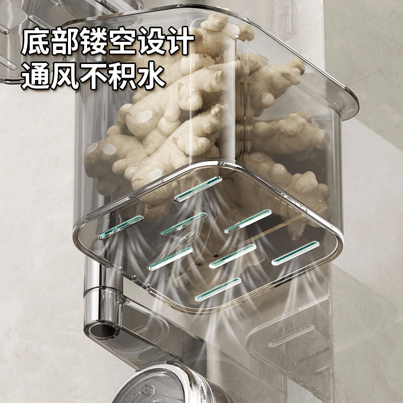 双吸盘旋转葱姜蒜收纳盒厨房置物架子挂篮墙上神器收纳篮储物神器