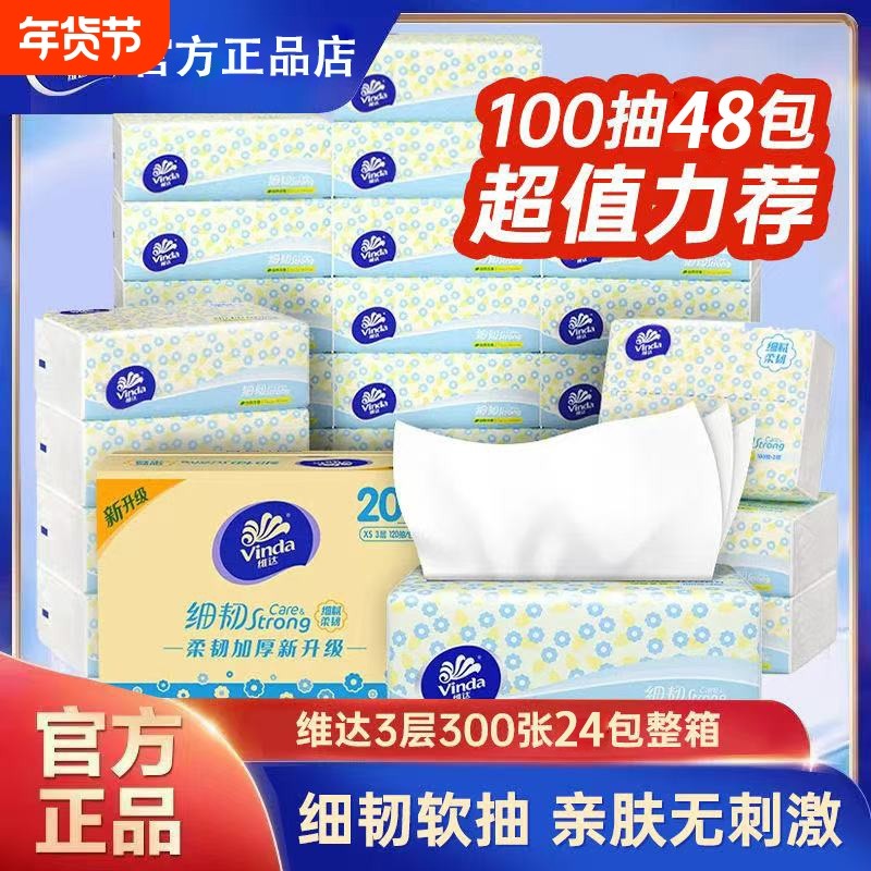 维达抽纸细韧整箱100抽48包纸巾家用餐巾纸面巾纸卫生纸学生宿舍