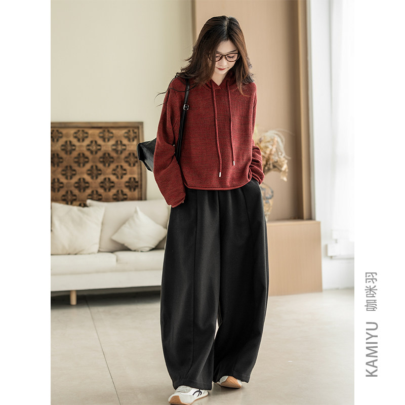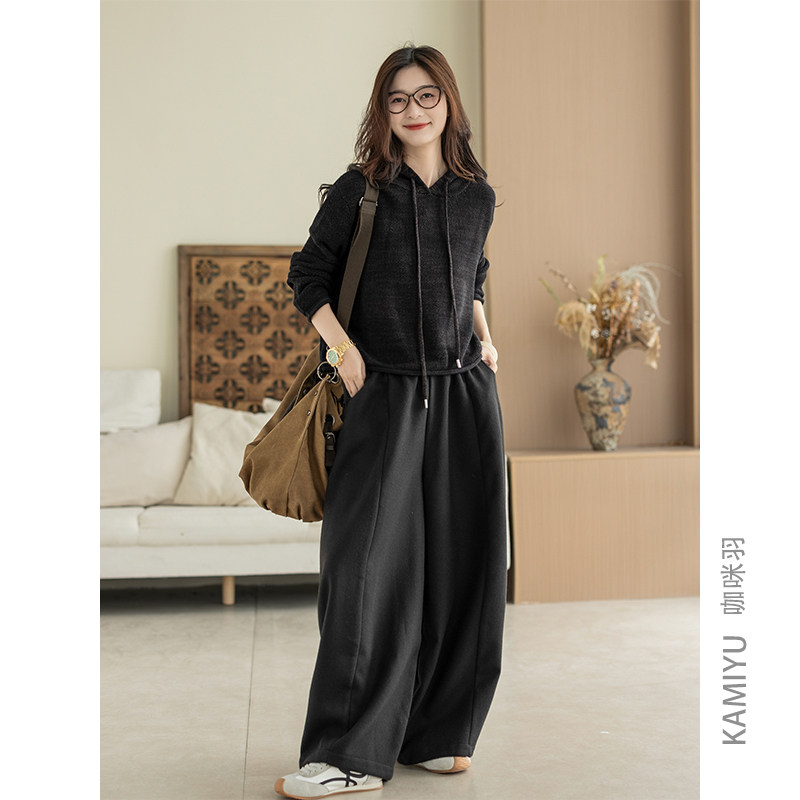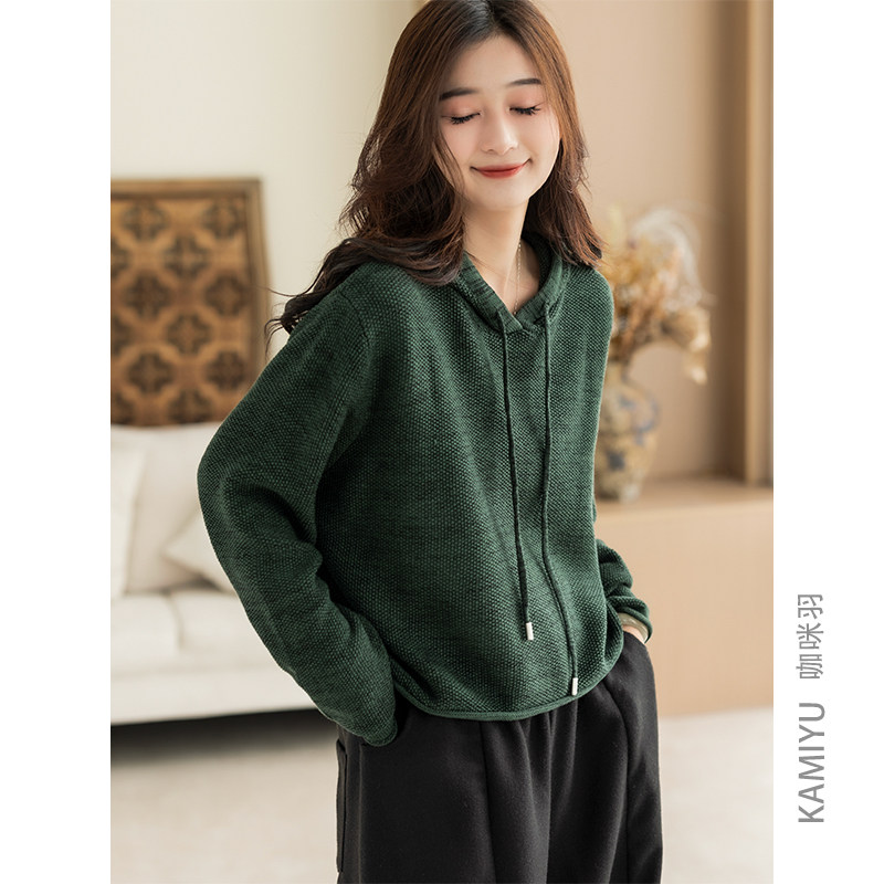 咖咪羽针织连帽女新款好看文艺黑色休闲宽松女装卫衣帽子针织衫