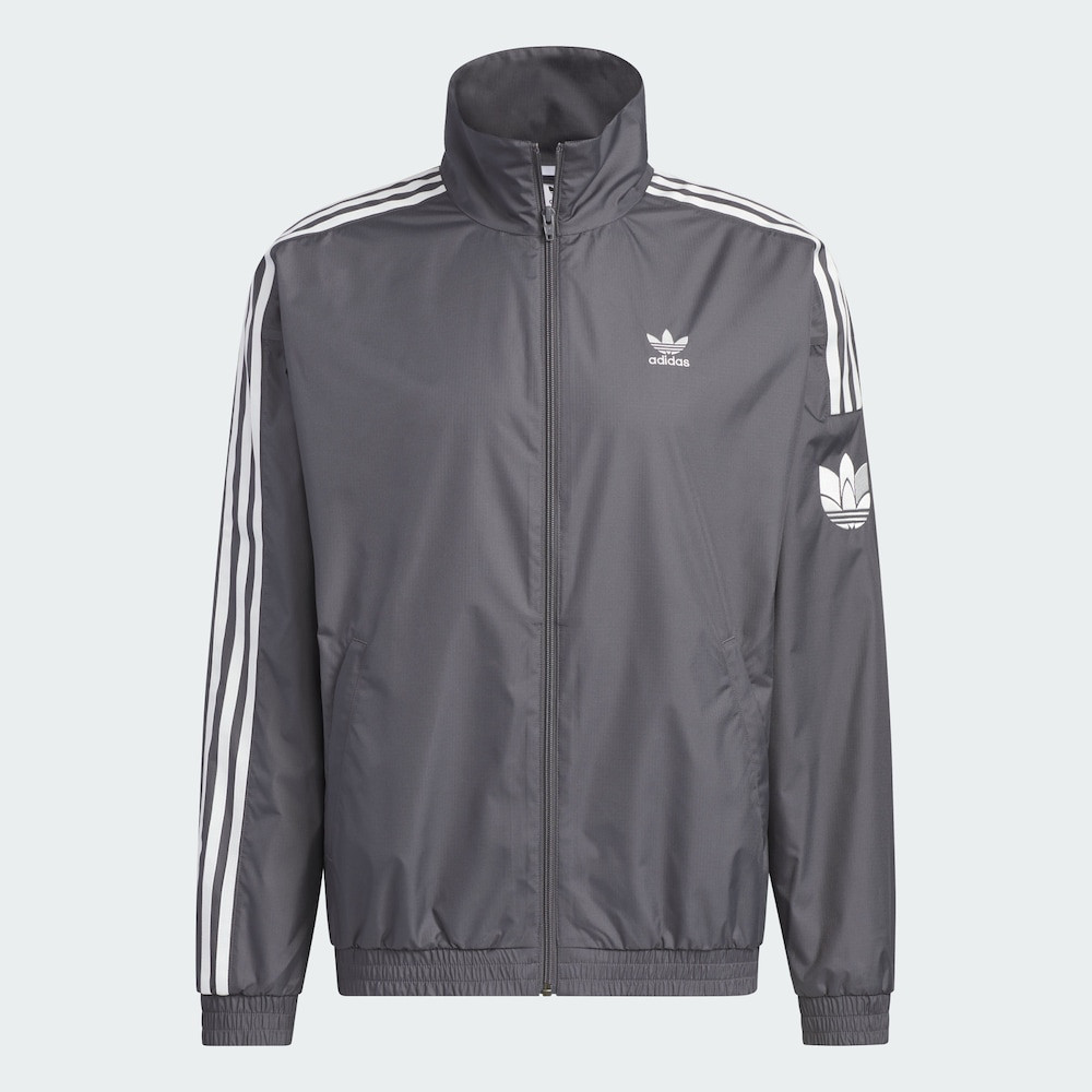 adidas originals三叶草深灰立领男女同款夹克外套百搭条纹长袖