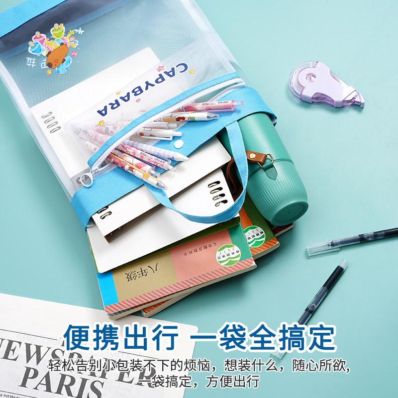 卡皮巴拉补习袋小学生手提袋学生透明拎书袋男女孩儿童帆布补课包补习班学习美术袋课外作业书包专用袋子装书