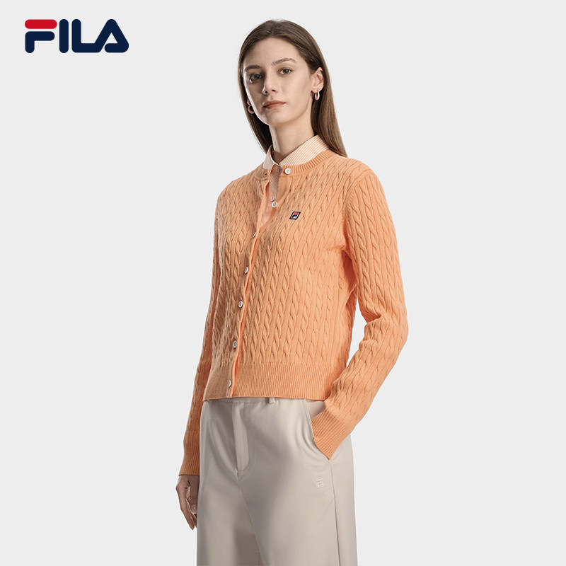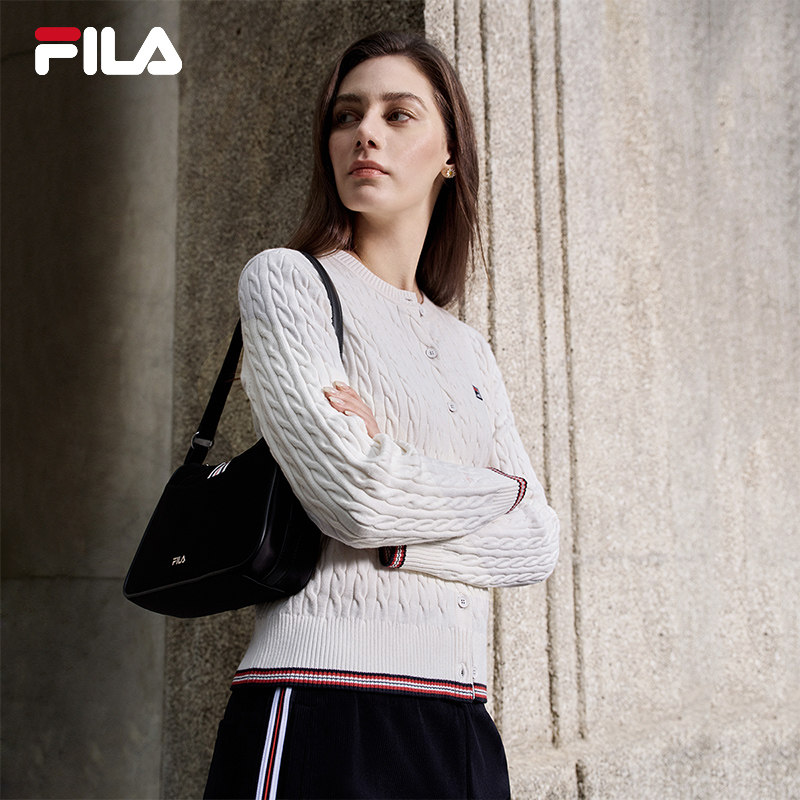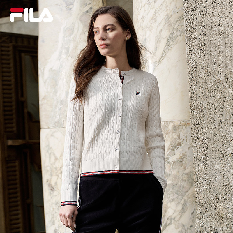 FILA 斐乐官方长袖保暖编织外套女春季新款时尚复古毛衣运动上衣