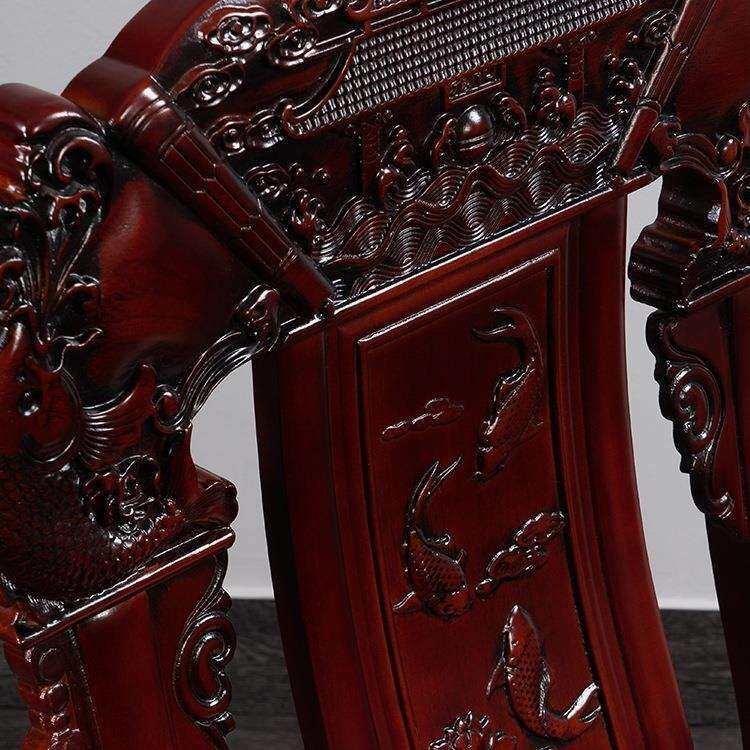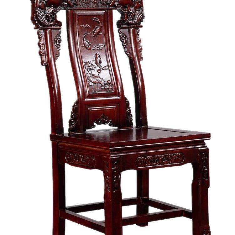 仿古中式明清色鱼跃龙雕花酒店家用全实木橡胶木靠背整张餐椅