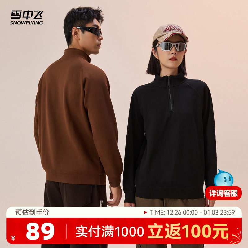 雪中飞2025秋新款男女同款半开领潮流情侣保暖绒感卫衣舒适百搭