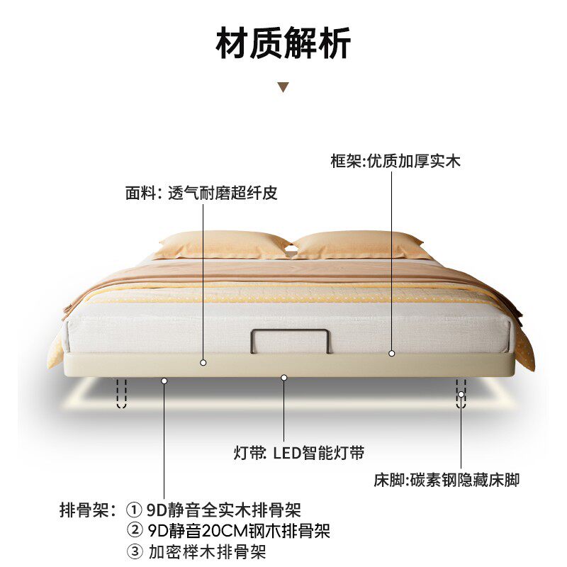 无床头真皮悬浮床轻奢简约大小户型主卧皮艺床储物床双人现代简约