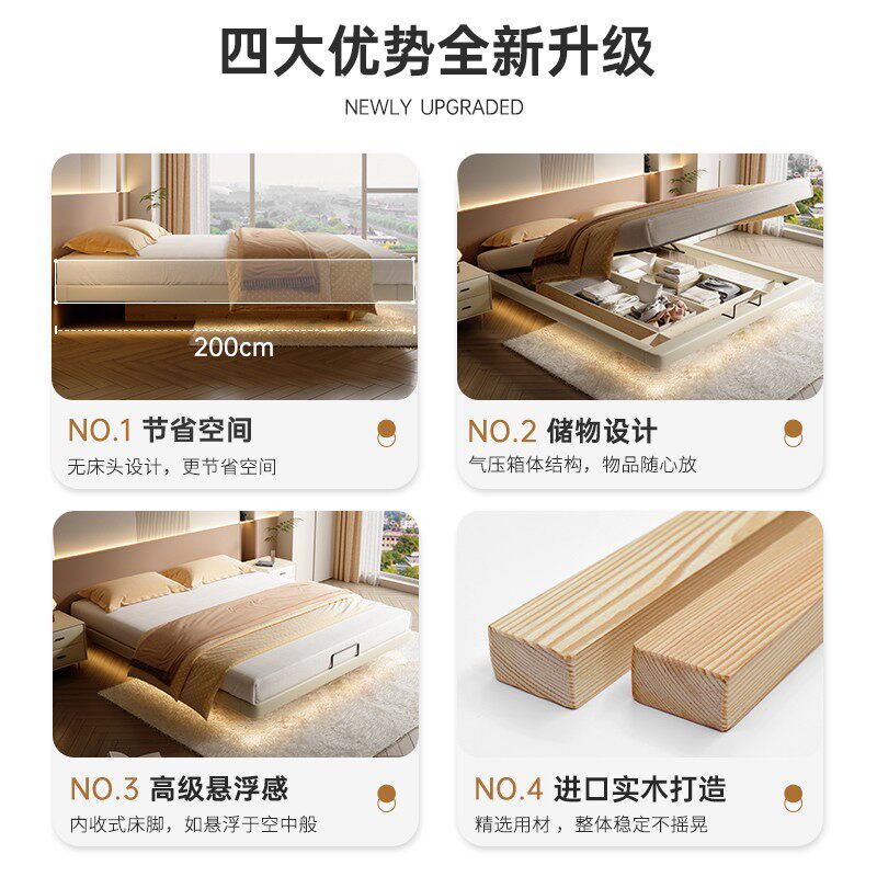 政府补贴喜临门奶油风悬浮床现代简约轻奢婚床主卧大床 仙女床