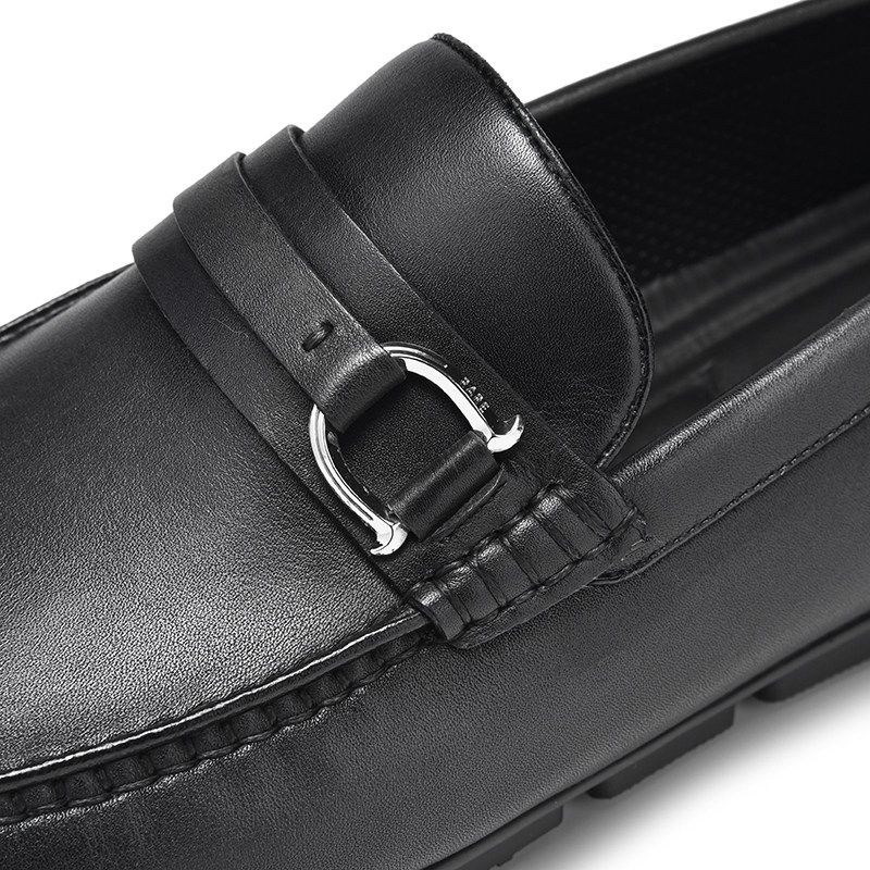 RARE威雅男鞋 春夏新款商务休闲牛皮革正装鞋 男士黑色豆豆鞋