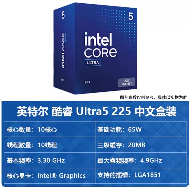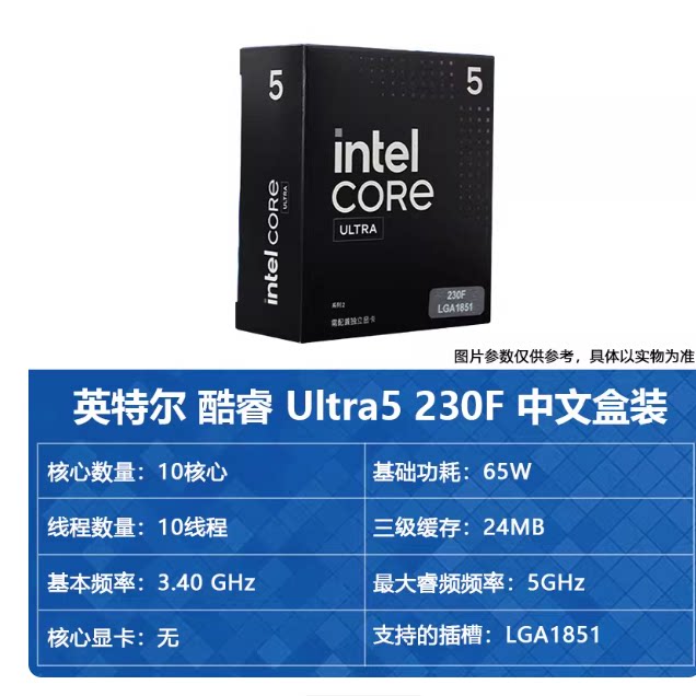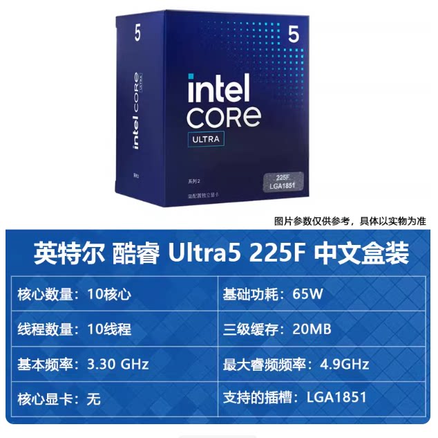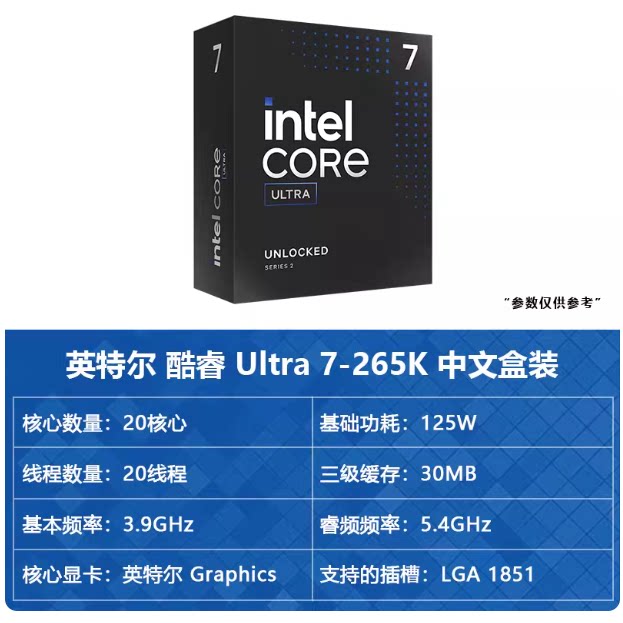 英特尔15代Ultra 5 225F/230F/U7 265KF/265K中文盒装CPU处理器