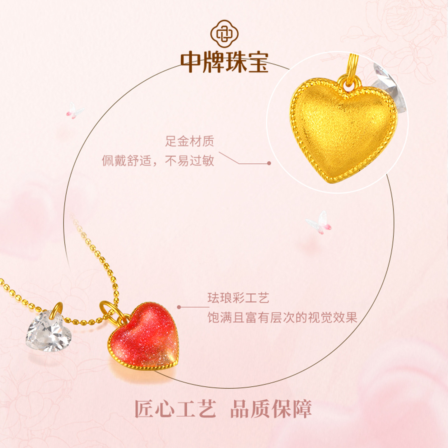 爱心黄金吊坠足金心形项链多巴胺金吊坠讨你欢心套链桃心挂坠礼物