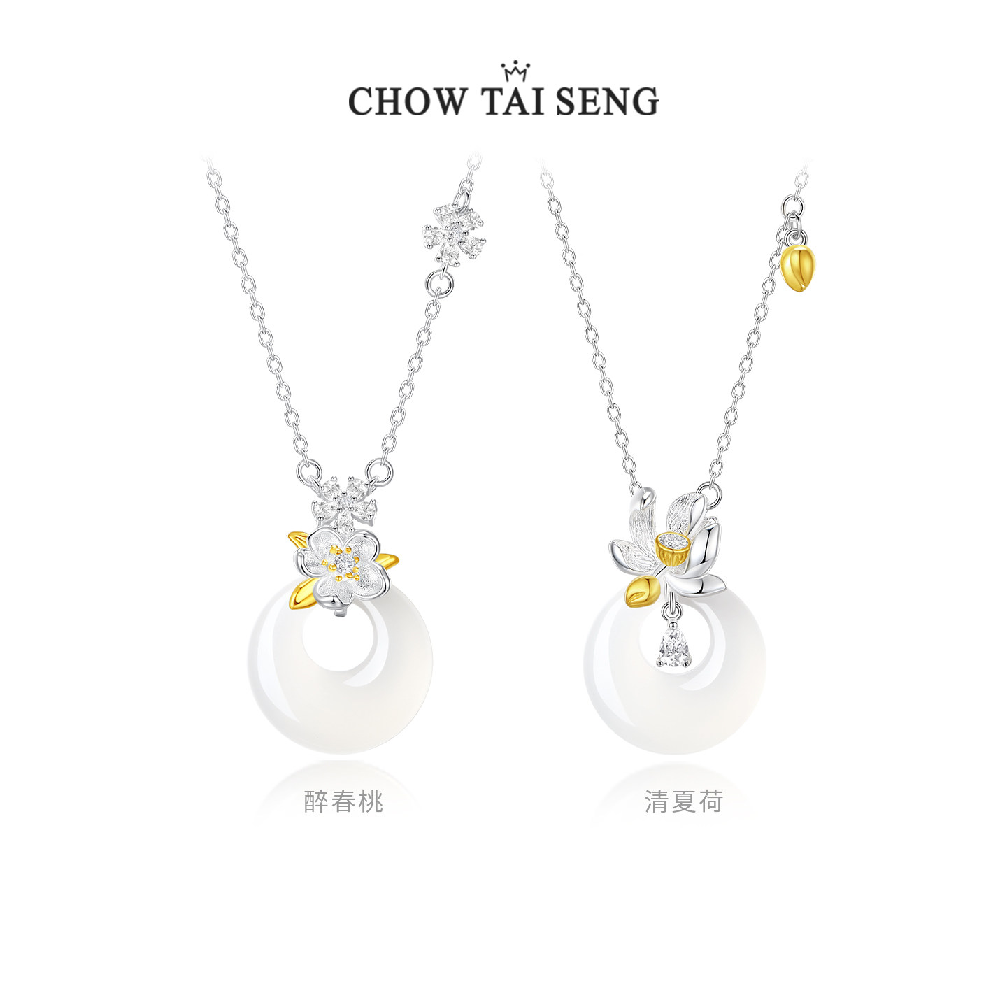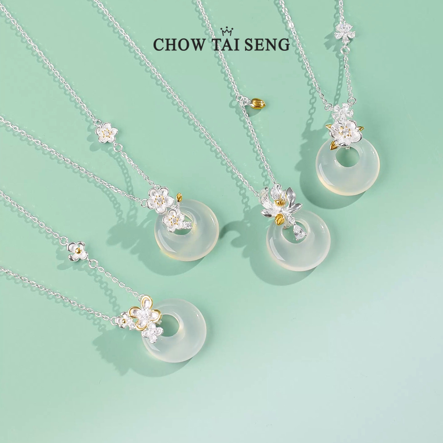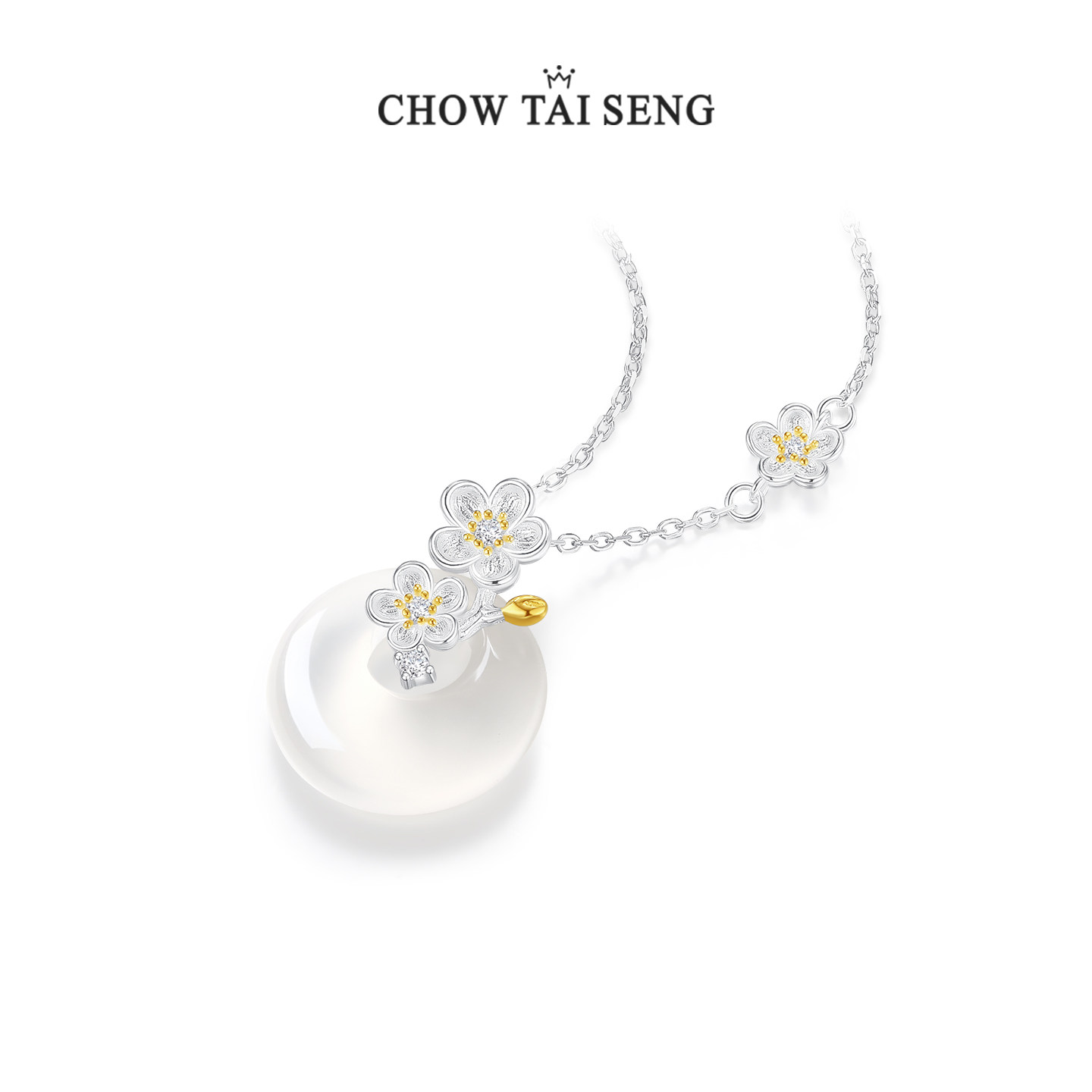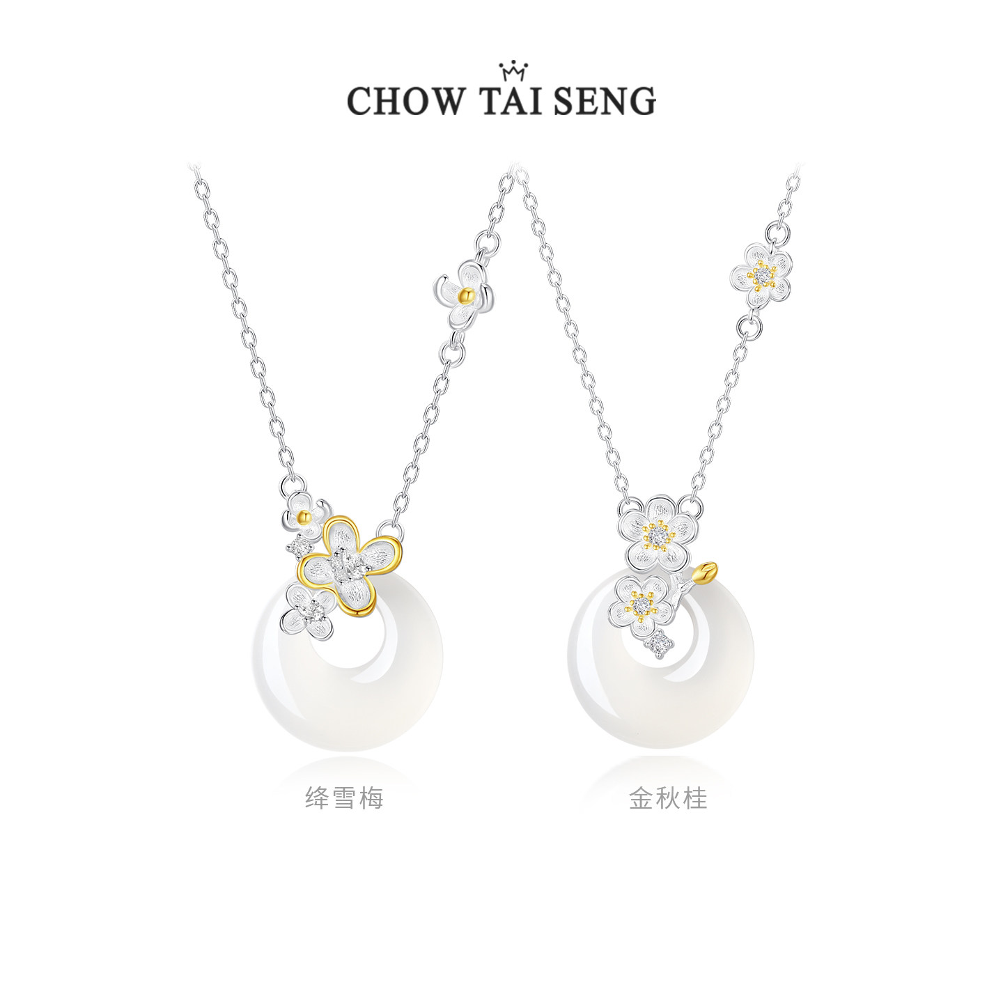 周大生四时花令平安扣项链桂花纯银本命年玉髓吊坠生日礼物送女友