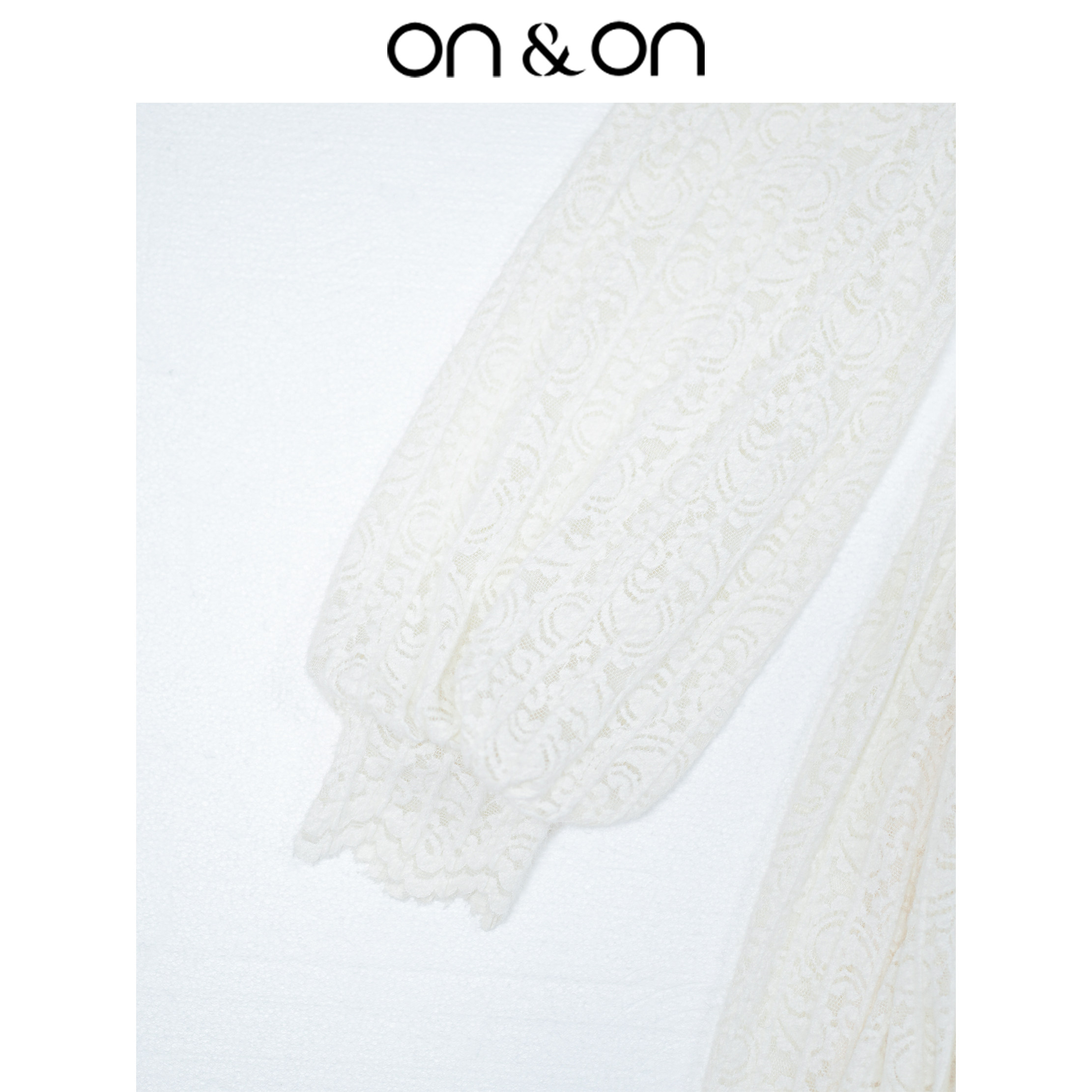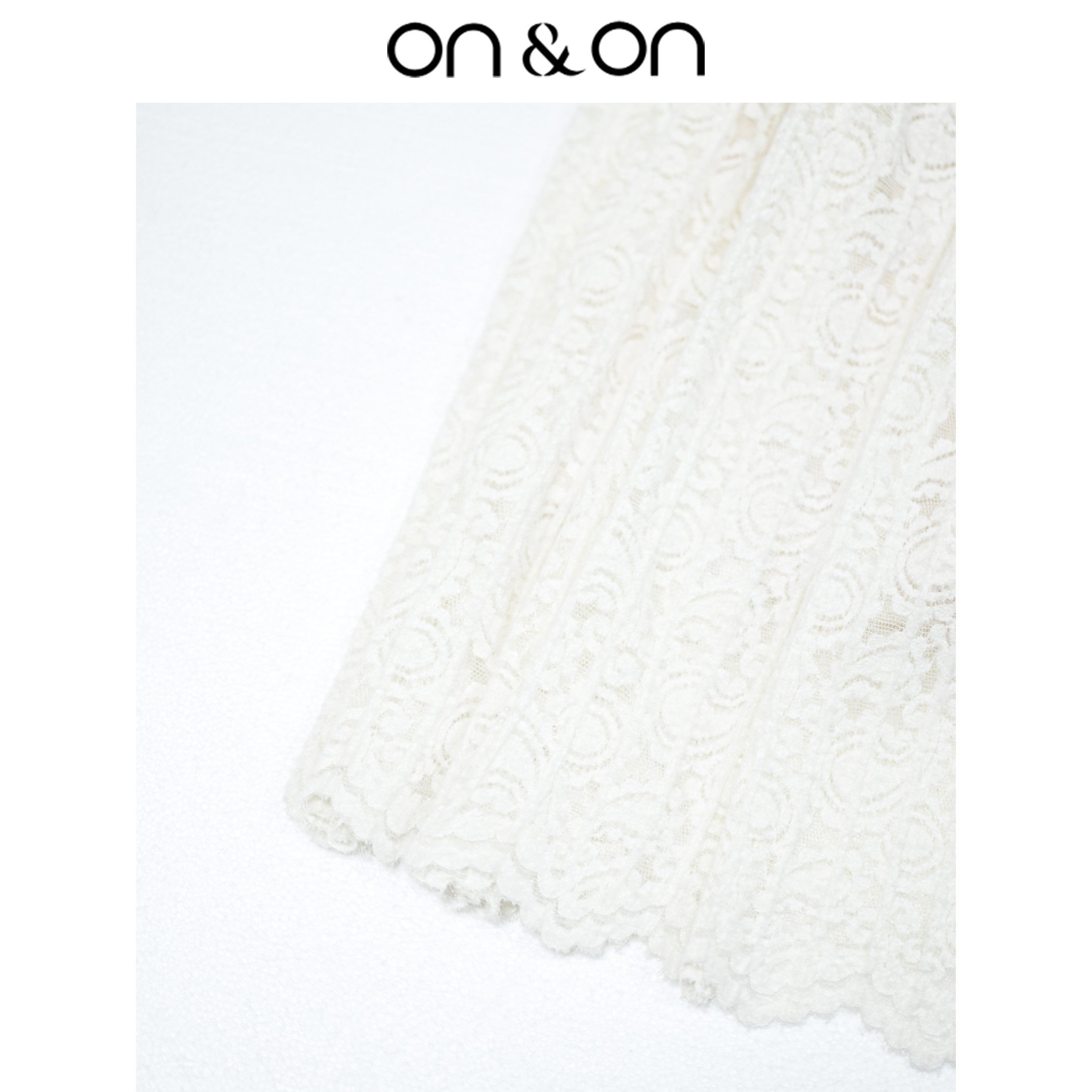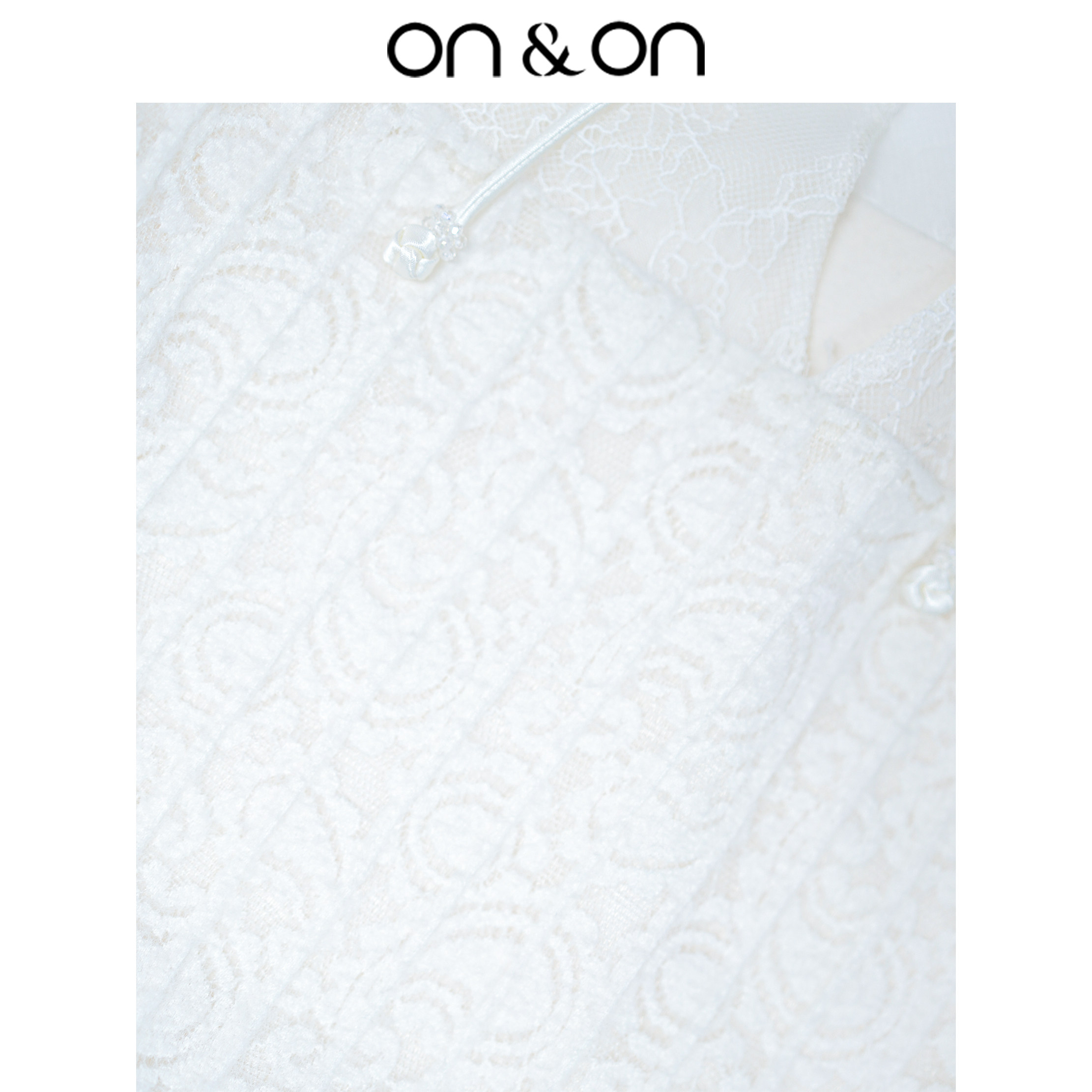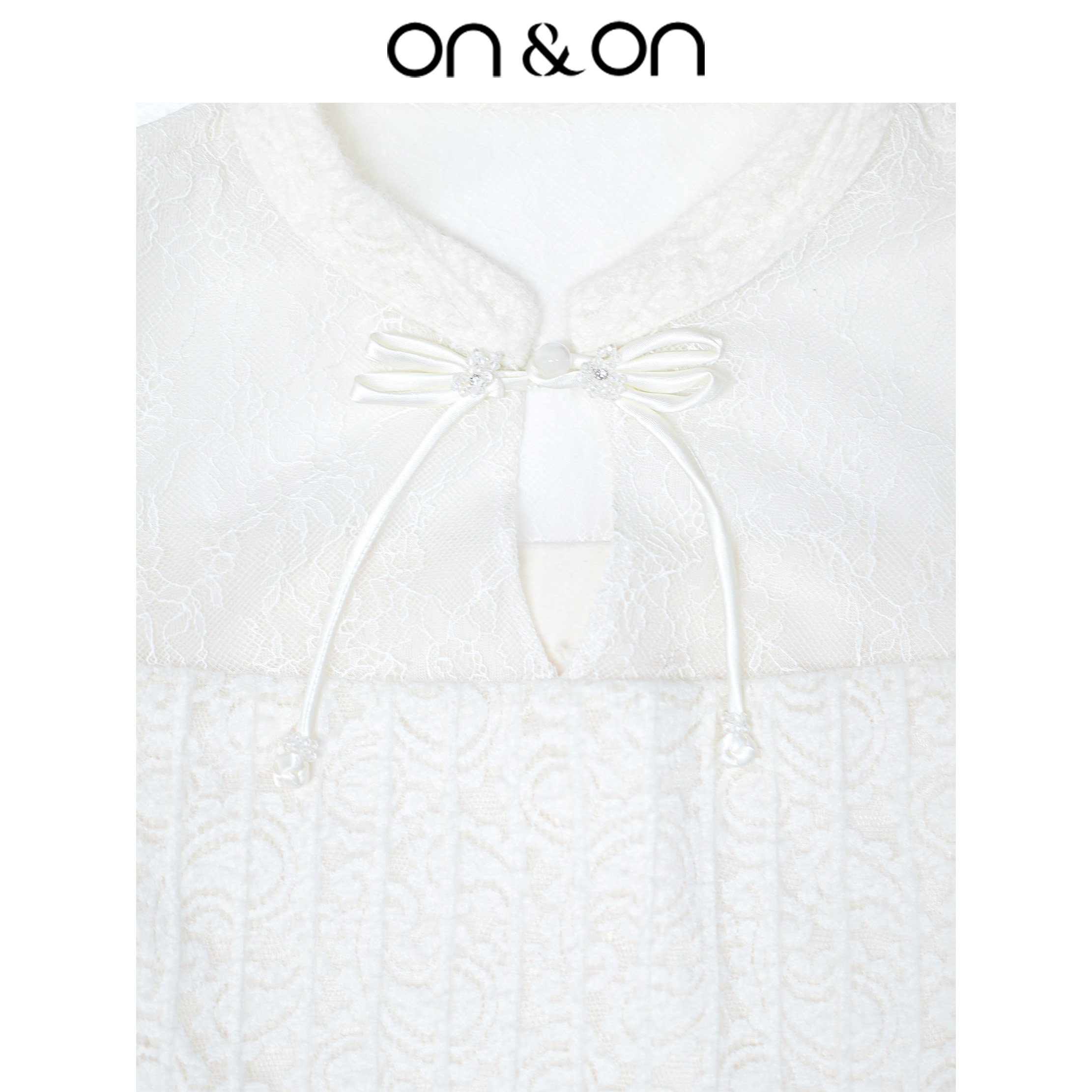 ON&ON/安乃安冬季新款新中式盘扣领蕾丝修身压褶收腰A字连衣裙女