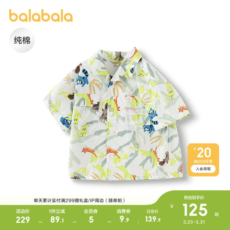 巴拉巴拉童装男童短袖衬衫纯棉衬衣2026休闲夏装户外时尚百搭洋气