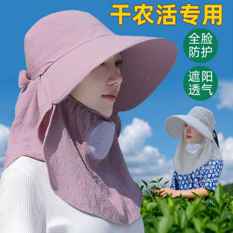 采茶帽女夏天农村下地干活帽子防晒面罩太阳帽大帽檐遮阳帽全脸