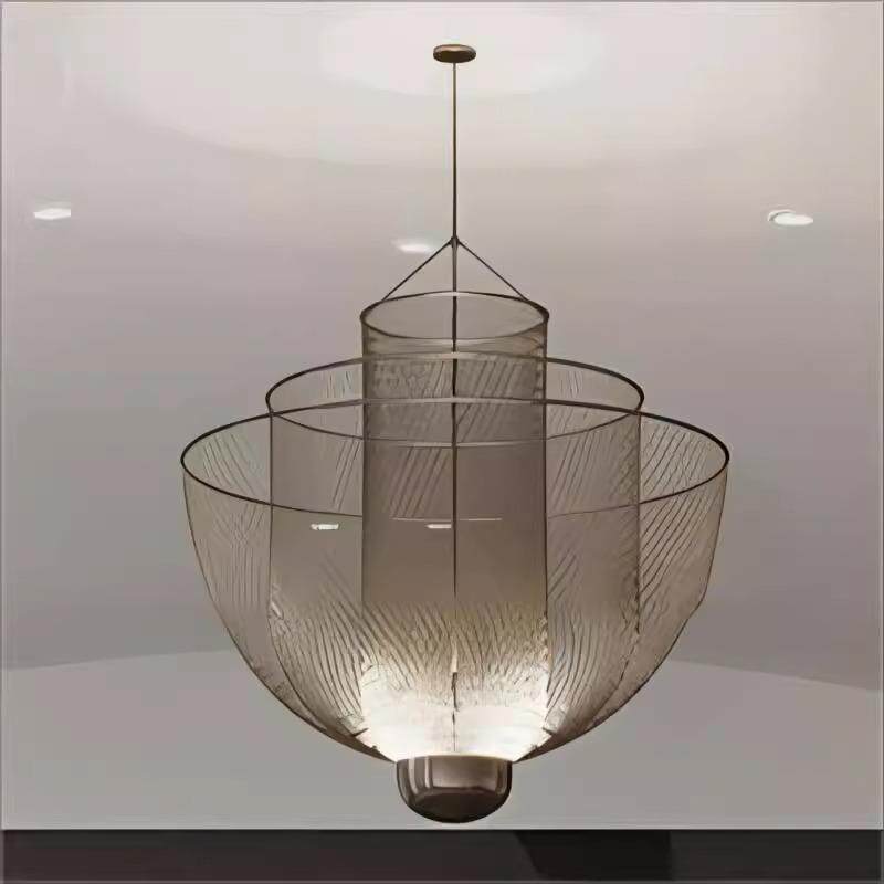 后现代轻奢网格艺术餐厅客厅灯设计师样板间酒店复式楼梯工程吊灯