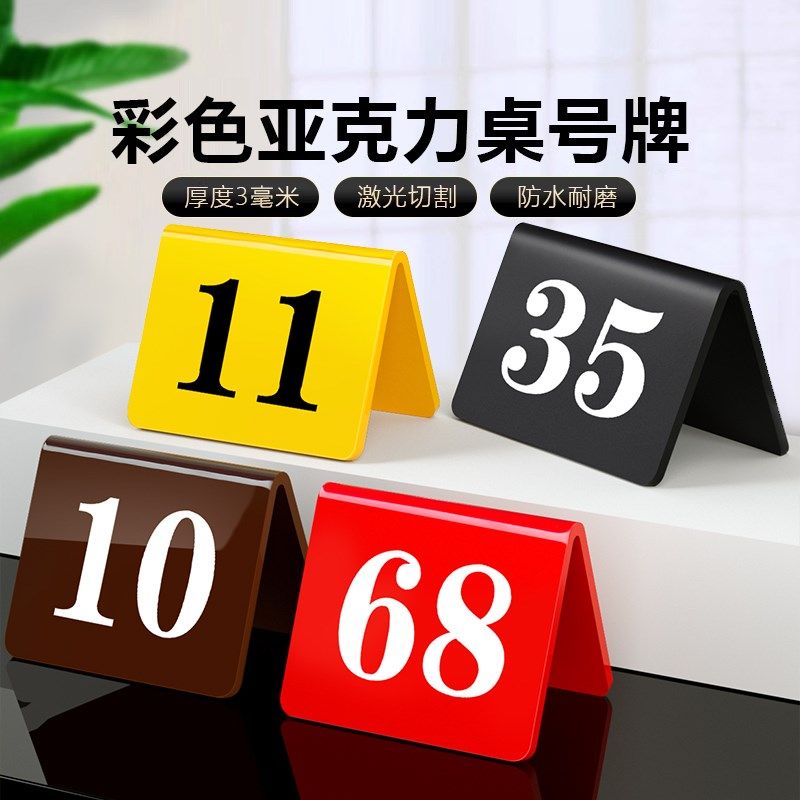 10个装彩色亚克力桌号牌定制双面标识号码牌餐馆餐厅数字餐饮取餐