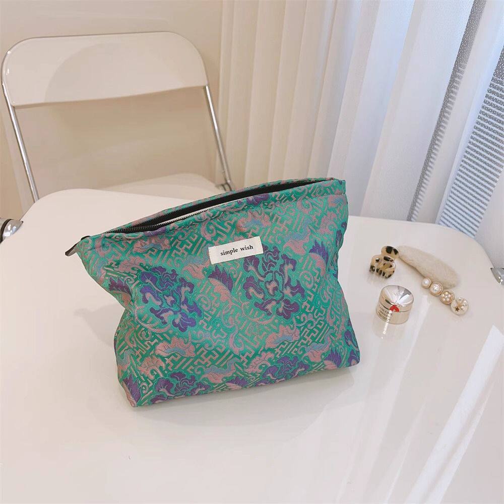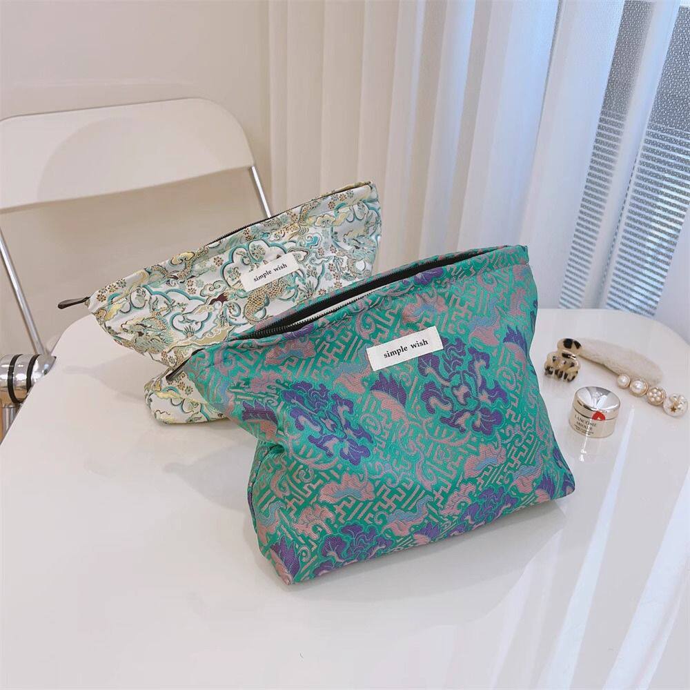 国风化妆包高级感回纹牡丹中式女便携精致提花帆布袋收纳包大容量