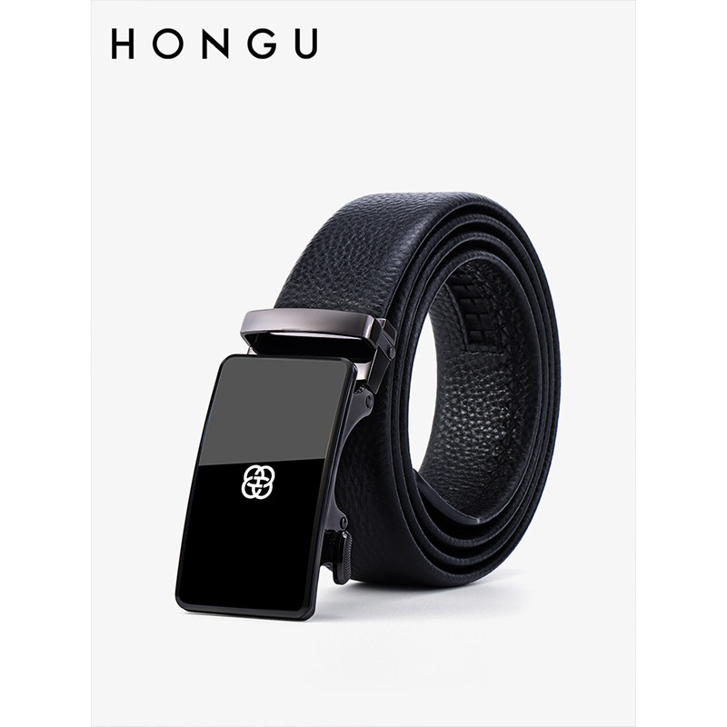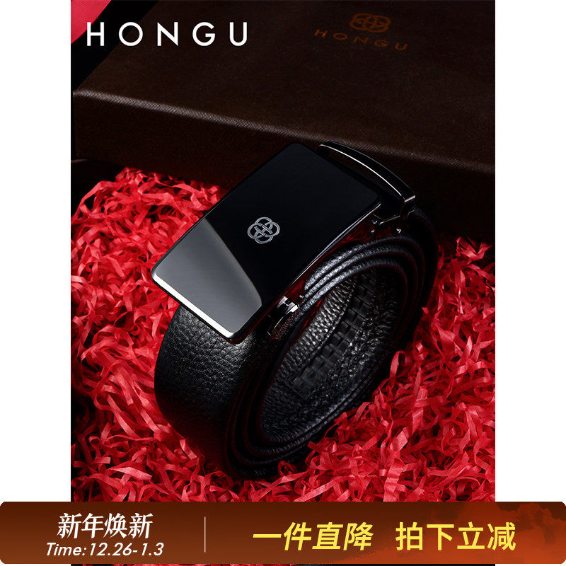 红谷新款皮带男真皮头层牛皮裤带时尚商务镜面自动扣腰带节日送礼