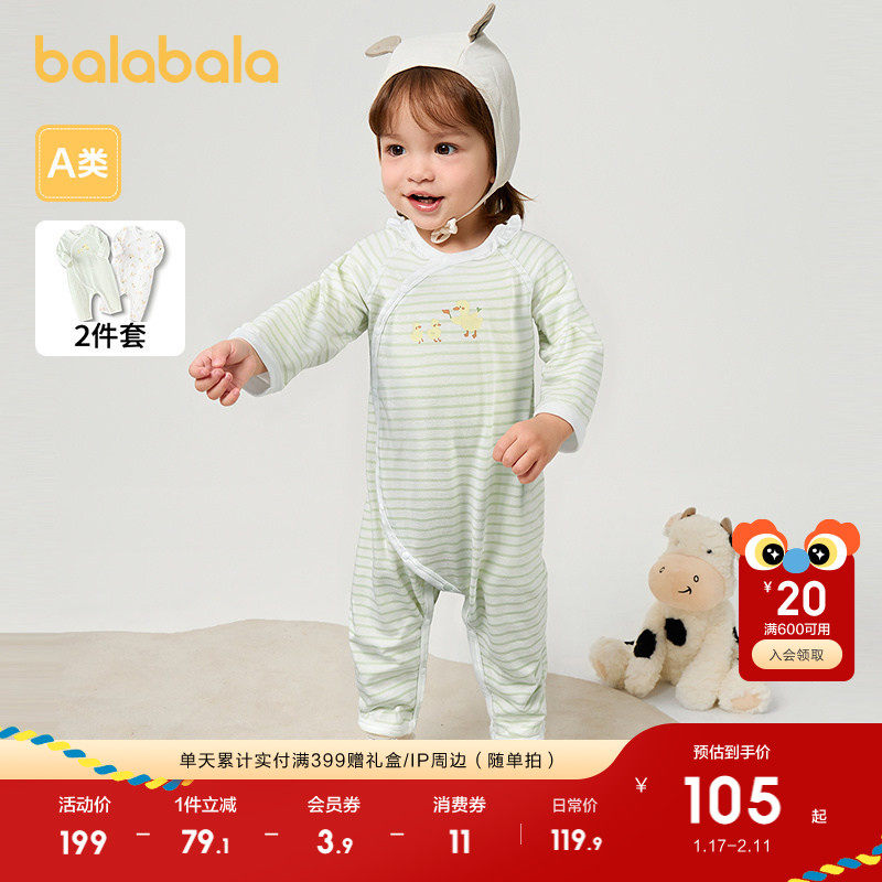 巴拉巴拉婴儿连体衣宝宝睡衣新生儿衣服包屁衣2025新款两件装春秋
