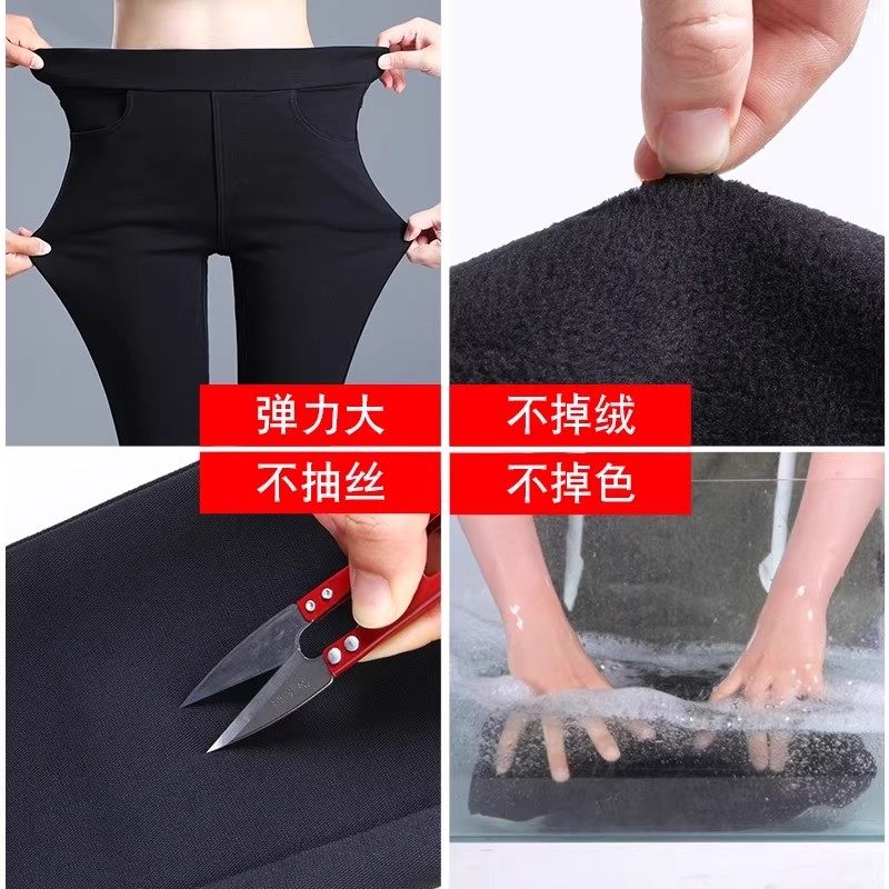 德绒秋裤女保暖裤冬季加厚内穿发热羊毛蚕丝护膝高腰显瘦打底裤