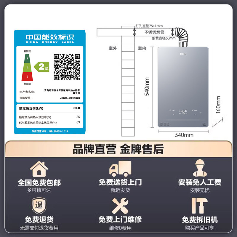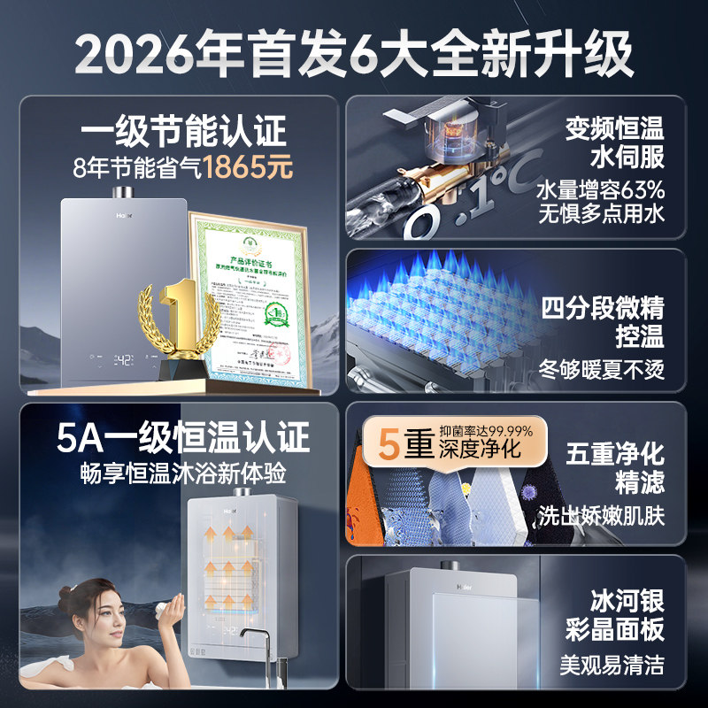 [政府补贴]海尔燃气热水器天然气一级静音节能水伺服恒温16升增压