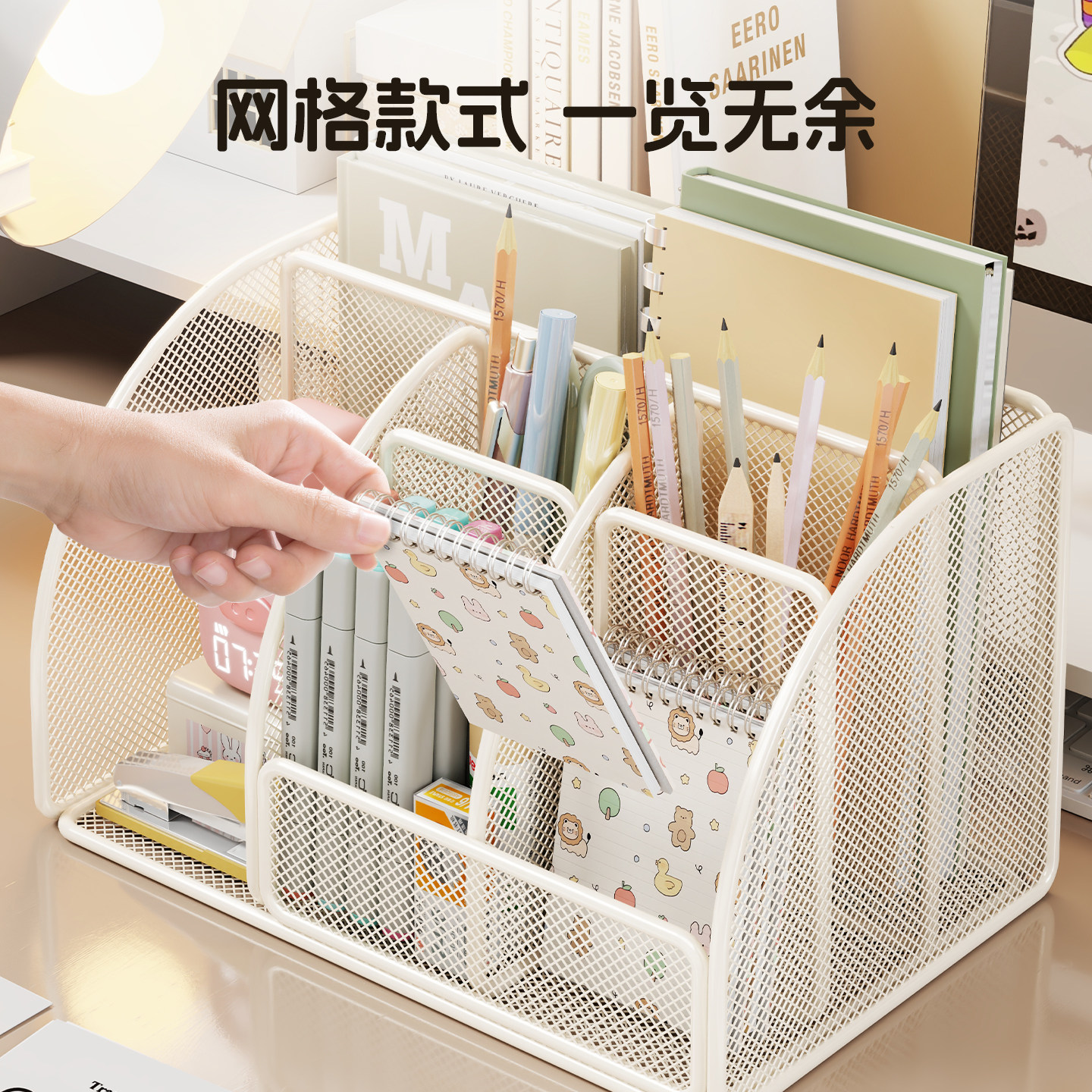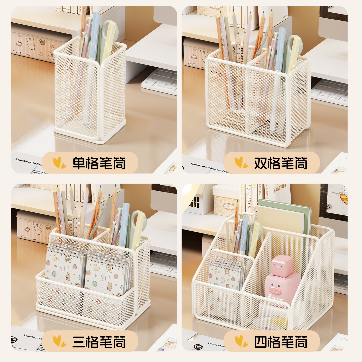 网格笔筒大容量装笔放笔学生文具笔座笔架收纳盒摆件办公用品笔桶