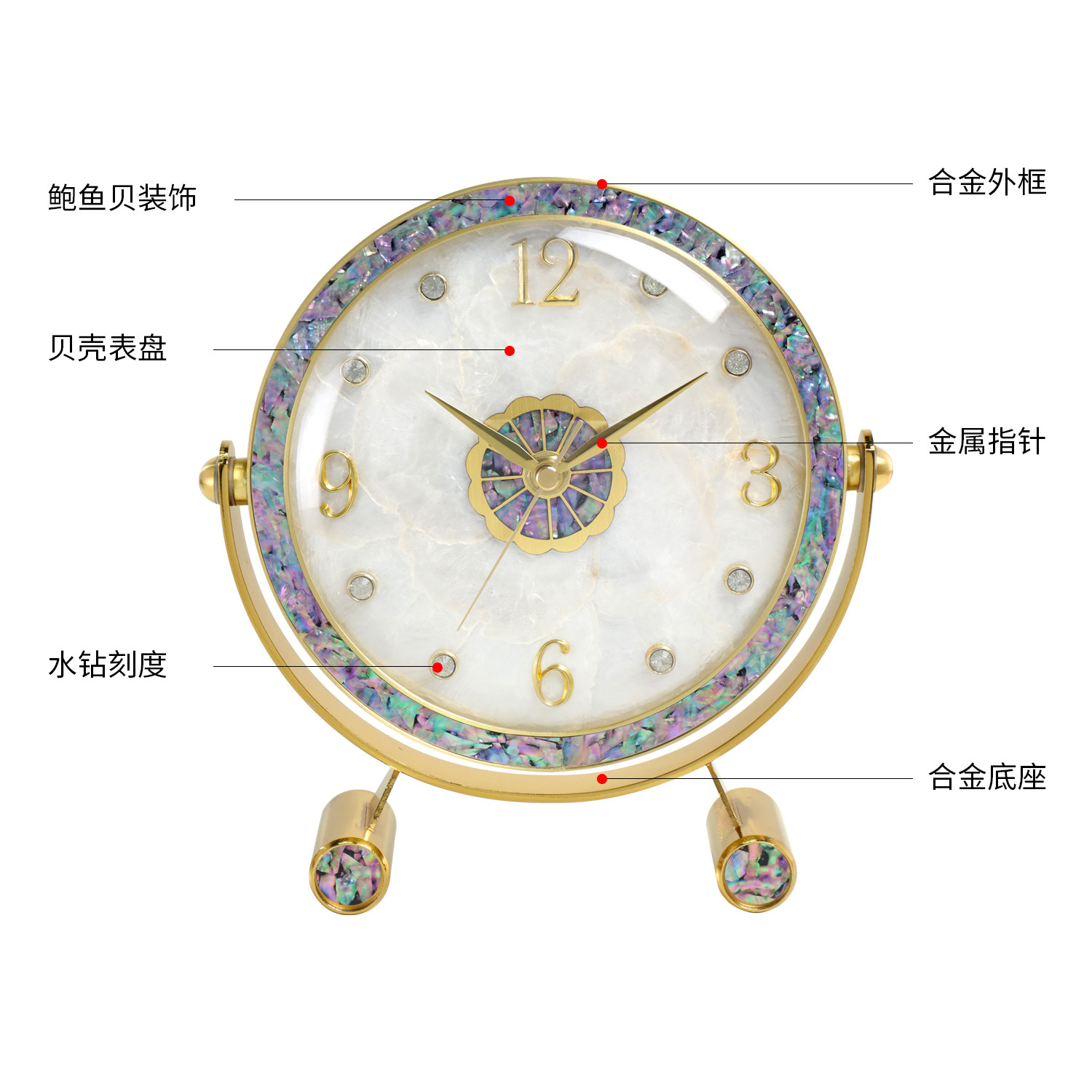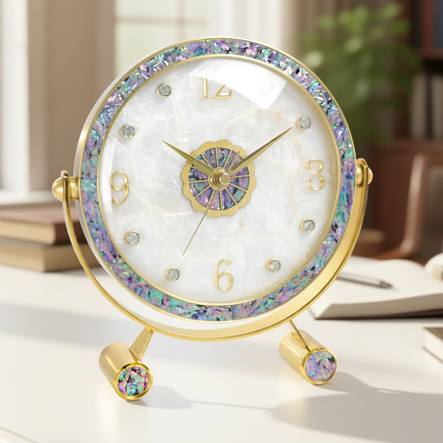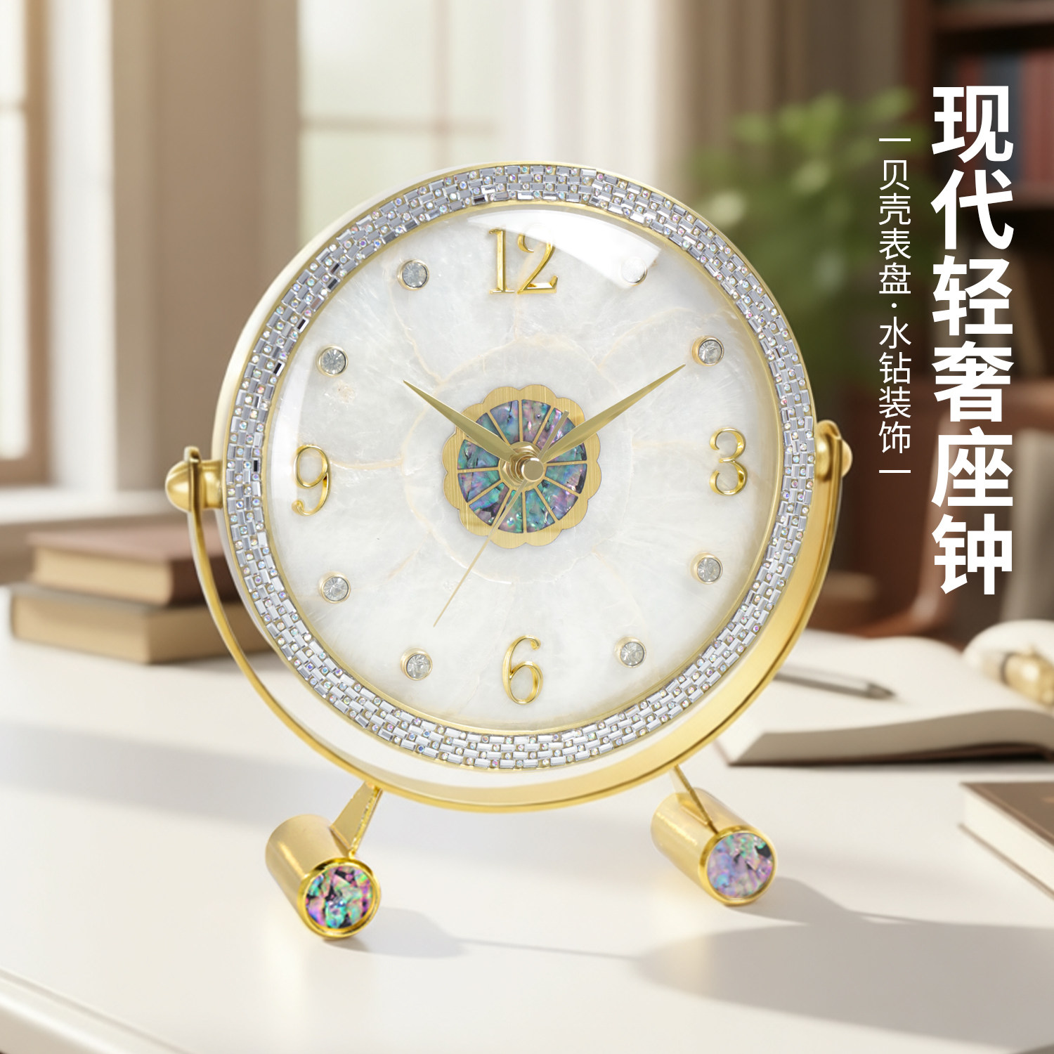 轻奢座钟客厅家用钟表贝壳装饰静音坐钟台式现代时钟创意台钟摆件
