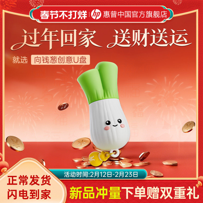 惠普官方旗舰店可爱向钱葱u盘手机电脑两用优盘女生礼物高颜值