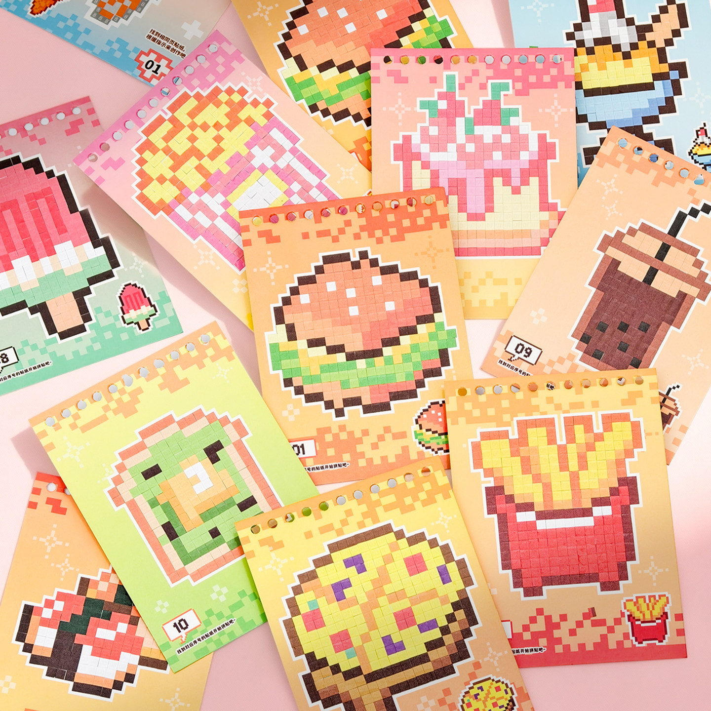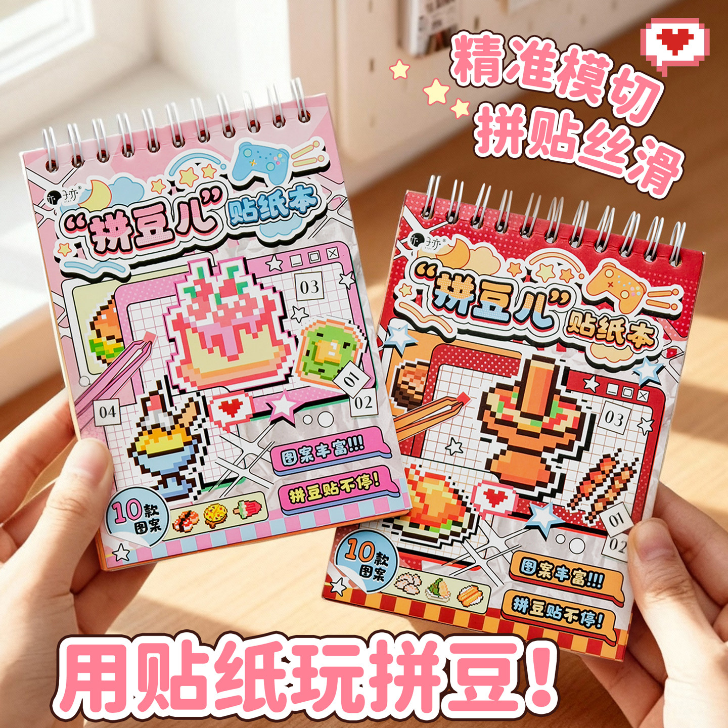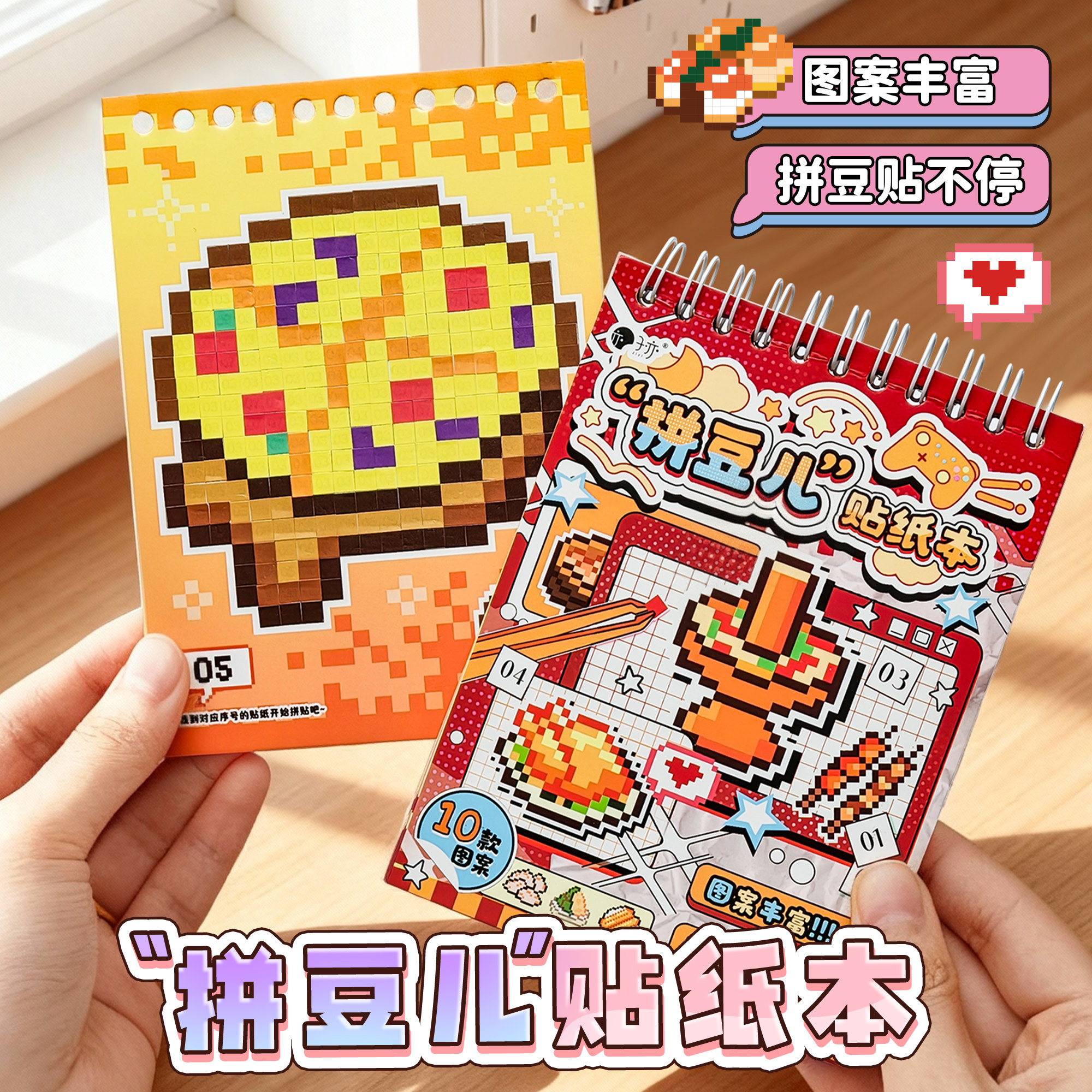 子亦像素风拼豆豆贴纸本美食造景贴纸书卡通可爱贴纸豆豆本迷你数字色号拼图贴手账装饰素材diy手工贴画本子