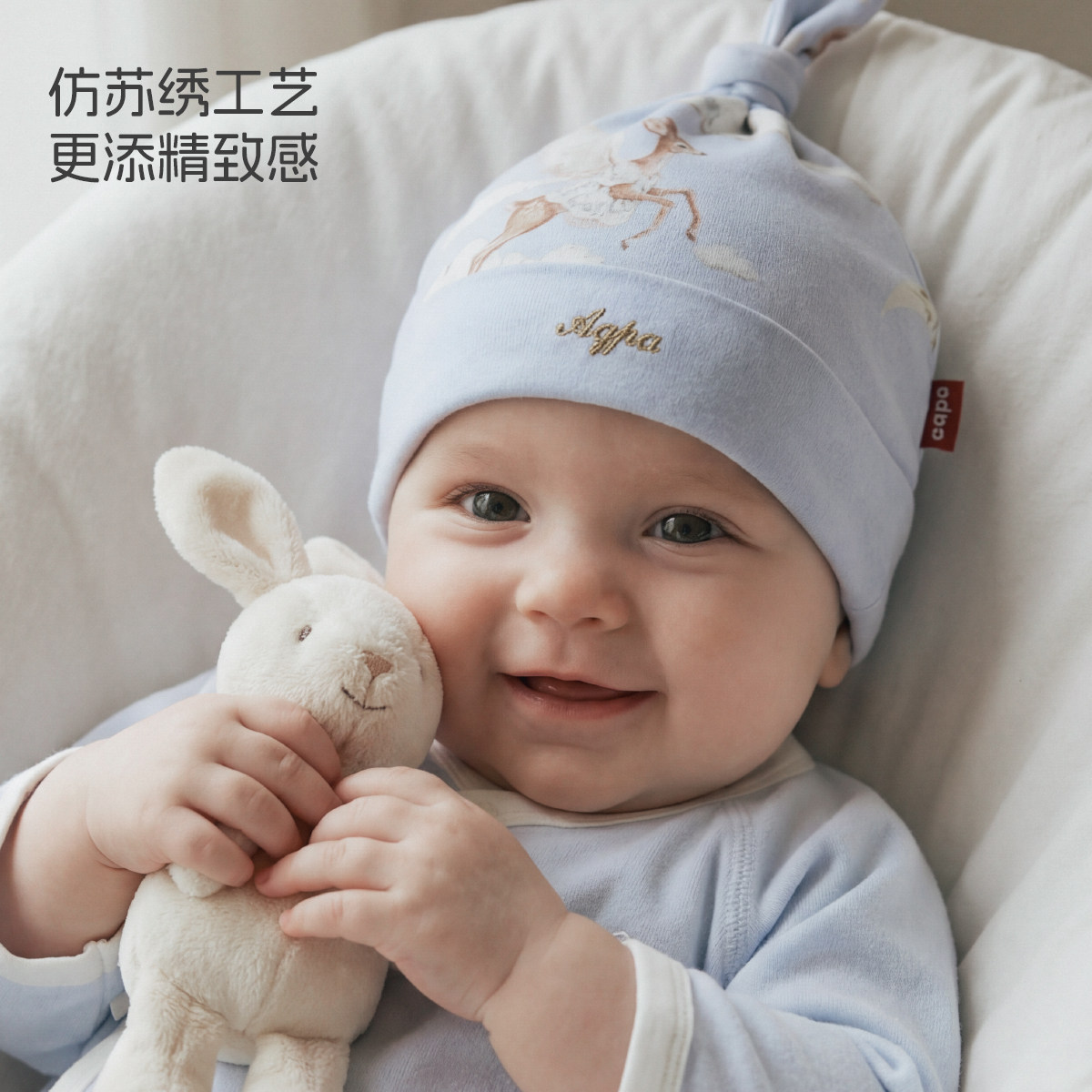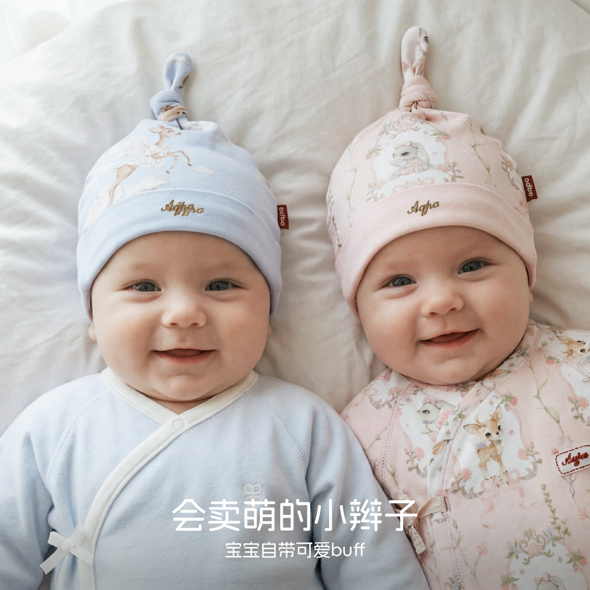 aqpa爱帕婴儿帽子纯棉春秋男女新生宝宝胎帽辫子帽小月龄洋气好看