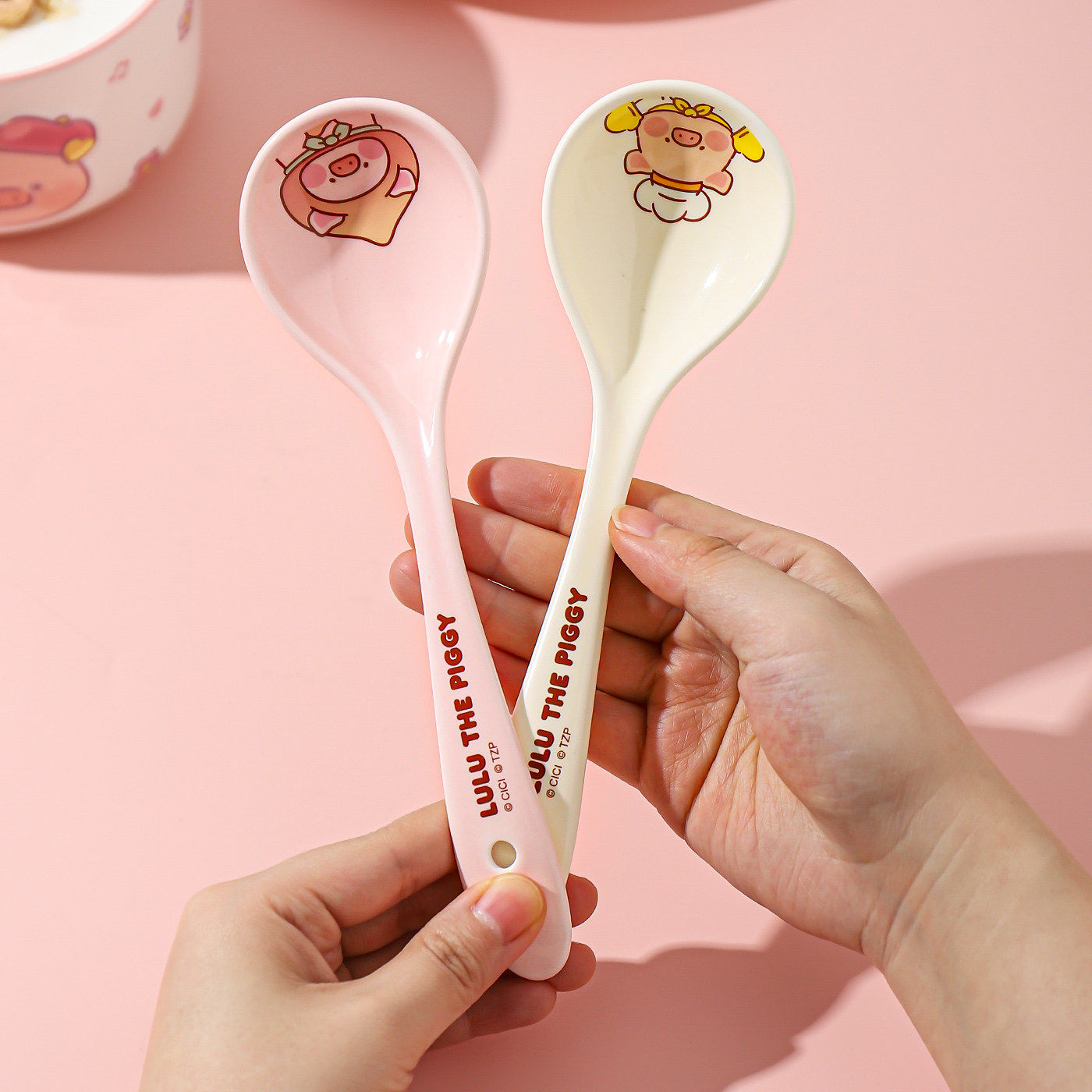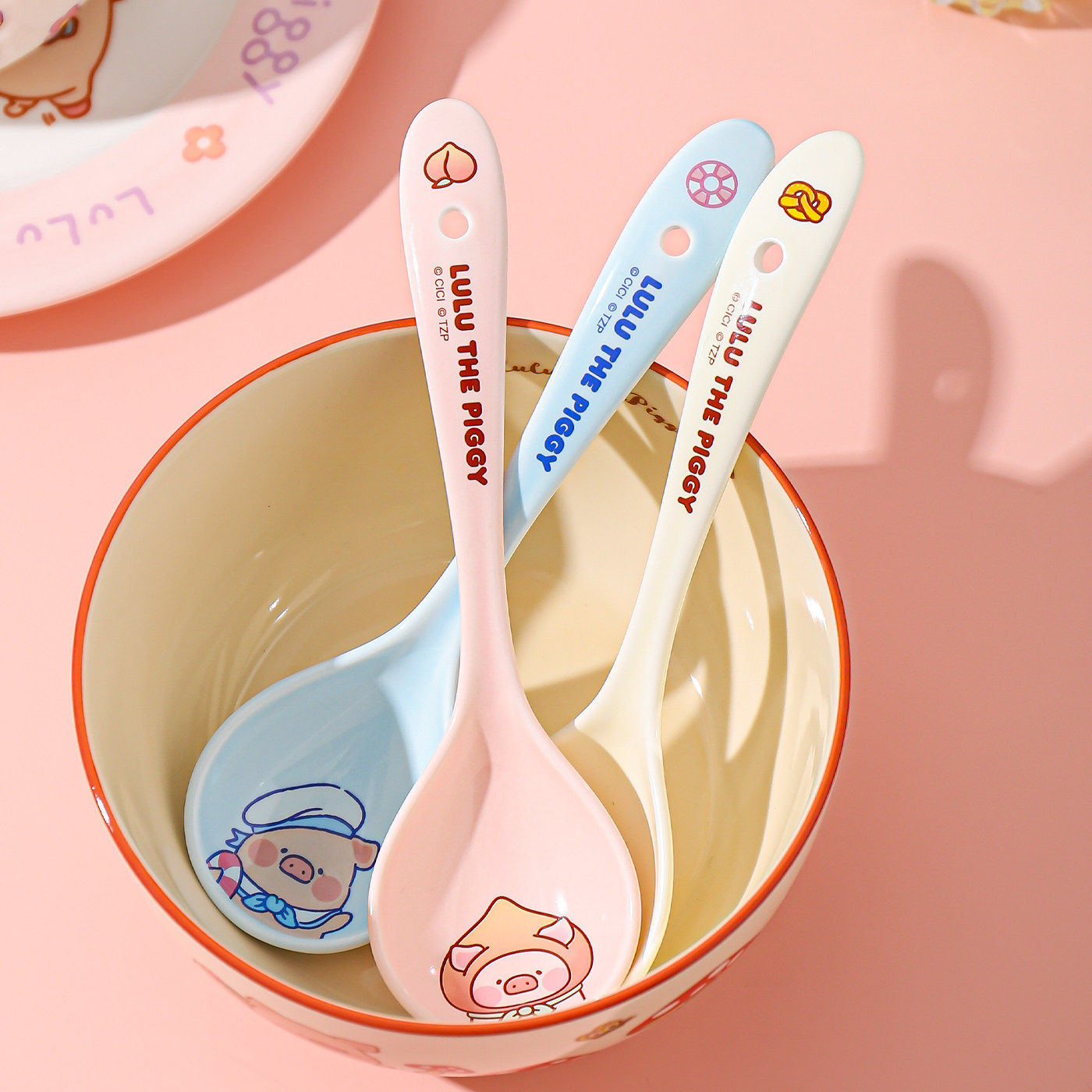 川岛屋&lulu猪联名 汤勺家用陶瓷调羹长柄汤匙嗦螺蛳粉喝汤小勺子