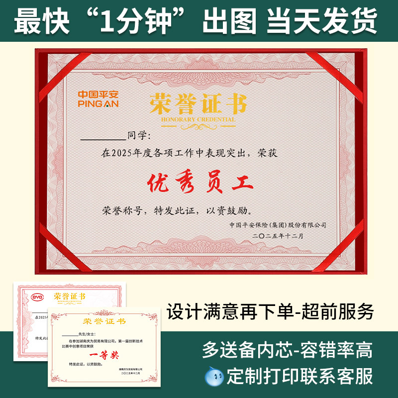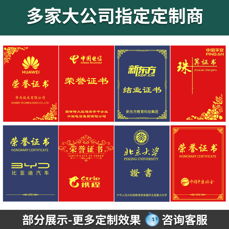 荣誉证书定制奖状证件书外壳高档烫金A4内芯打印优秀员工培训结业聘书企业颁奖学校志愿者比赛奖励获奖保护套