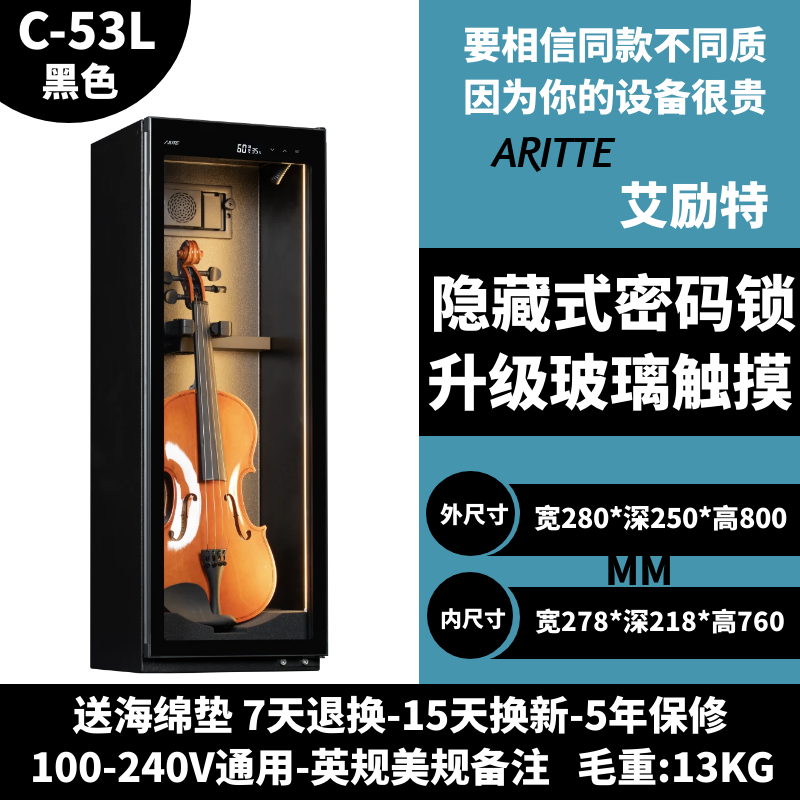 艾励特家用小提琴防潮箱吉他恒湿柜贝斯萨克斯展示柜干燥箱大提琴乐器保养密码锁防潮柜C53