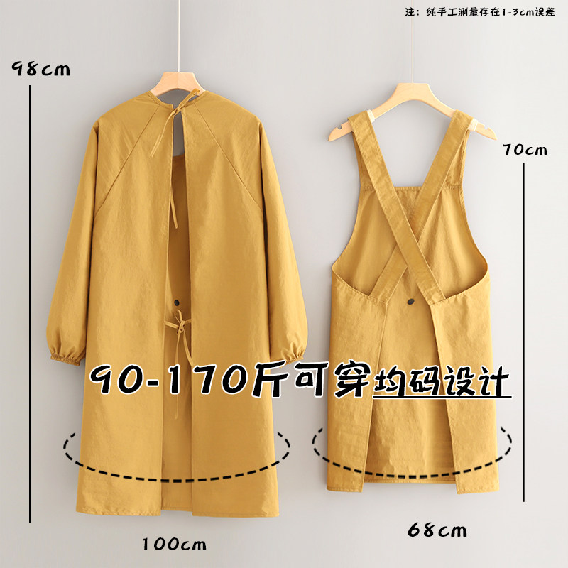 2026日本新款棉麻长袖围裙家用厨房透气罩衣女耐磨防污做饭工作服
