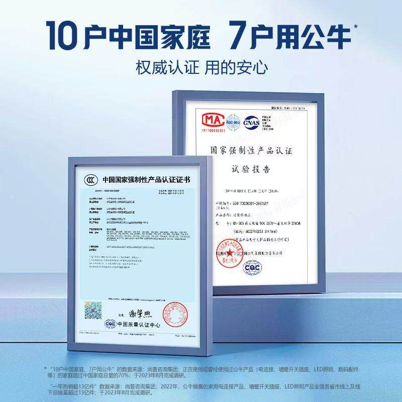 公牛排插延长线插座新国标升级1.8M/3M/4M家用过载大功率条形